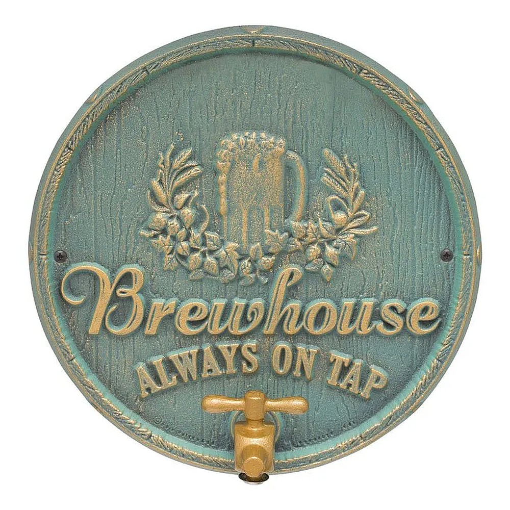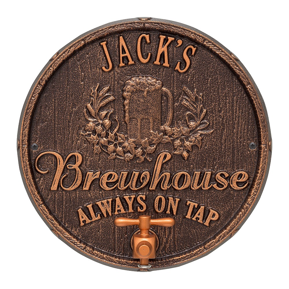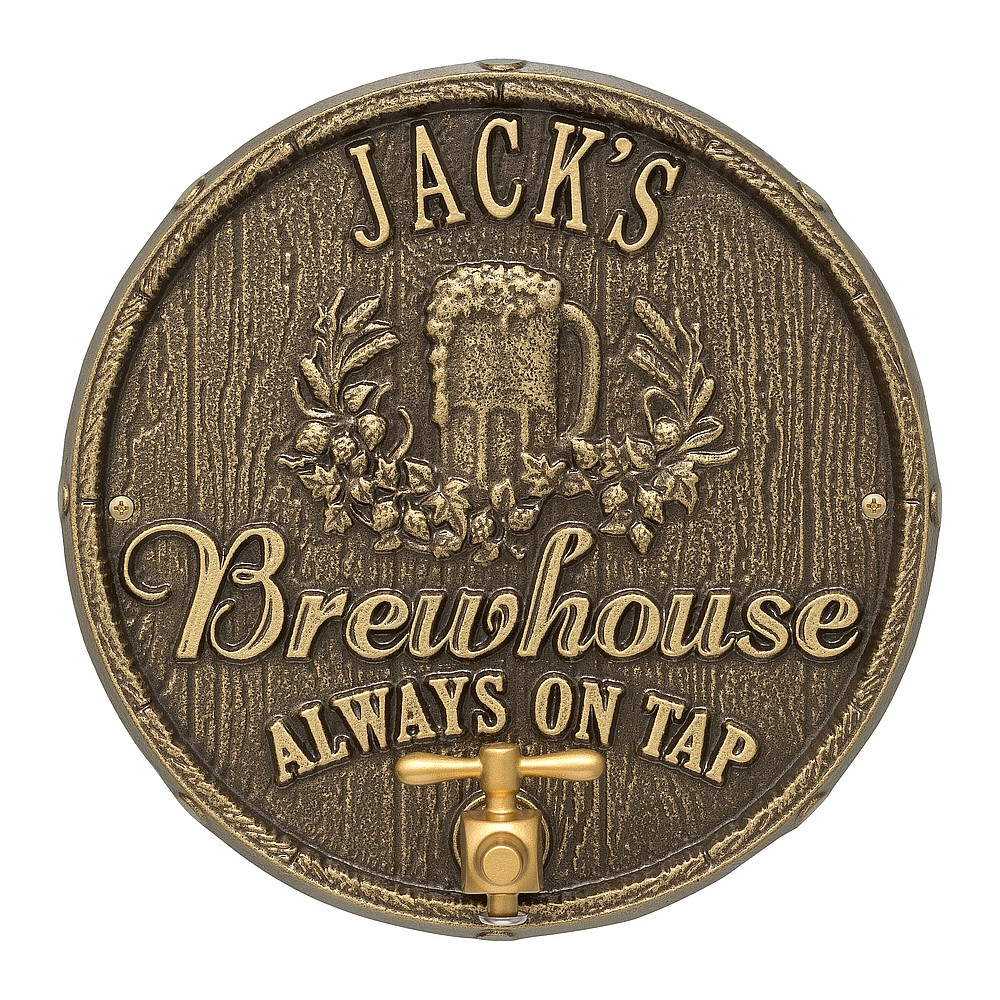 Dimensions (LxWxH): 11″ x 11″ x .35″ Cheers! The Oak Barrel Beer Pub Plaque is perfect for any home-brewer or craft beer aficionado. This handsome plaque creates a personalized touch in your private bar or man-cave. Crack open a cold one with the functional bottle opener on the tip of its tap. As the popularity of home brewing and home tap systems continues to rise, our oak barrel personalized bar sign is a great way to welcome your many guests. Handcrafted aluminum plaque for indoor or outdoor use. “Brewhouse” and “Always on Tap” are part of the design. Alumi-Shieldâ„¢ – Protects against the harshest weather and environmental elements. Extends the product life and maintains the look and function. Made in the USA.