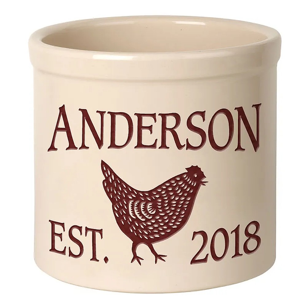 STORE SKU:Whitehall Personalized Bottom Center Chicken 2 Gallon Stoneware Crock – 4 Options