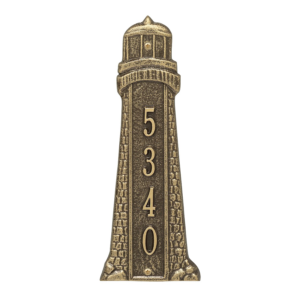 Dimensions (LxWxH): 4.5″ x 11.75″ x .375″ This coastal style Lighthouse Address Plaque is an attractive finishing touch for your home. Features a handmade, premium grade aluminum casting that showcases an intricate, detailed nautical design. Manufactured from cast, high-density aluminum alloy and protected by our exclusive Alumi-Shield™ all weather coatings. Alumi-Shield™ All Weather Coating: A Whitehall Exclusive Alumi-Shield™ – Protects against the harshest weather and environmental elements. Extends the product life and maintains the look and function. Made in the USA.