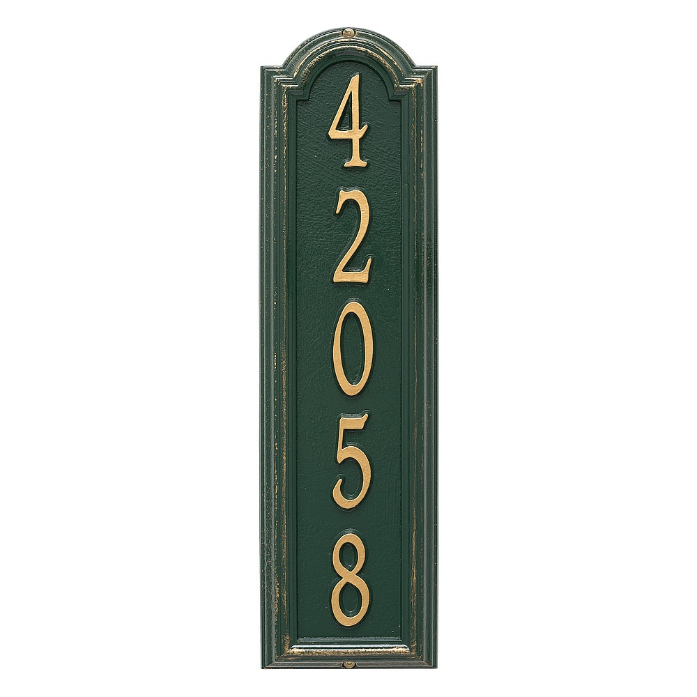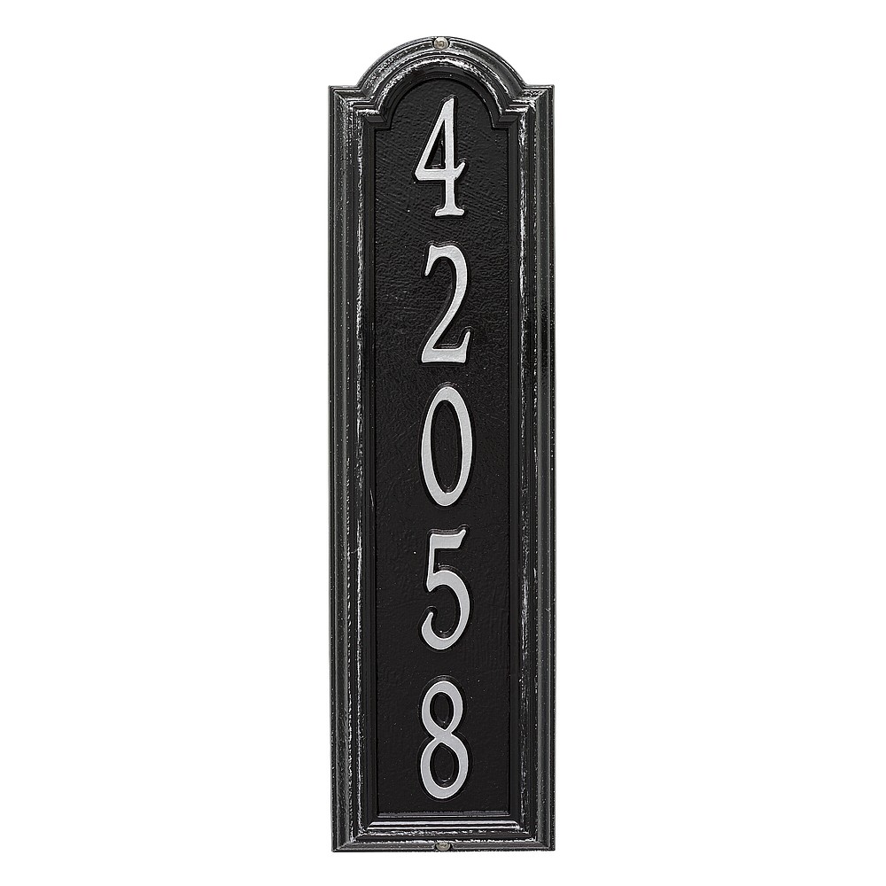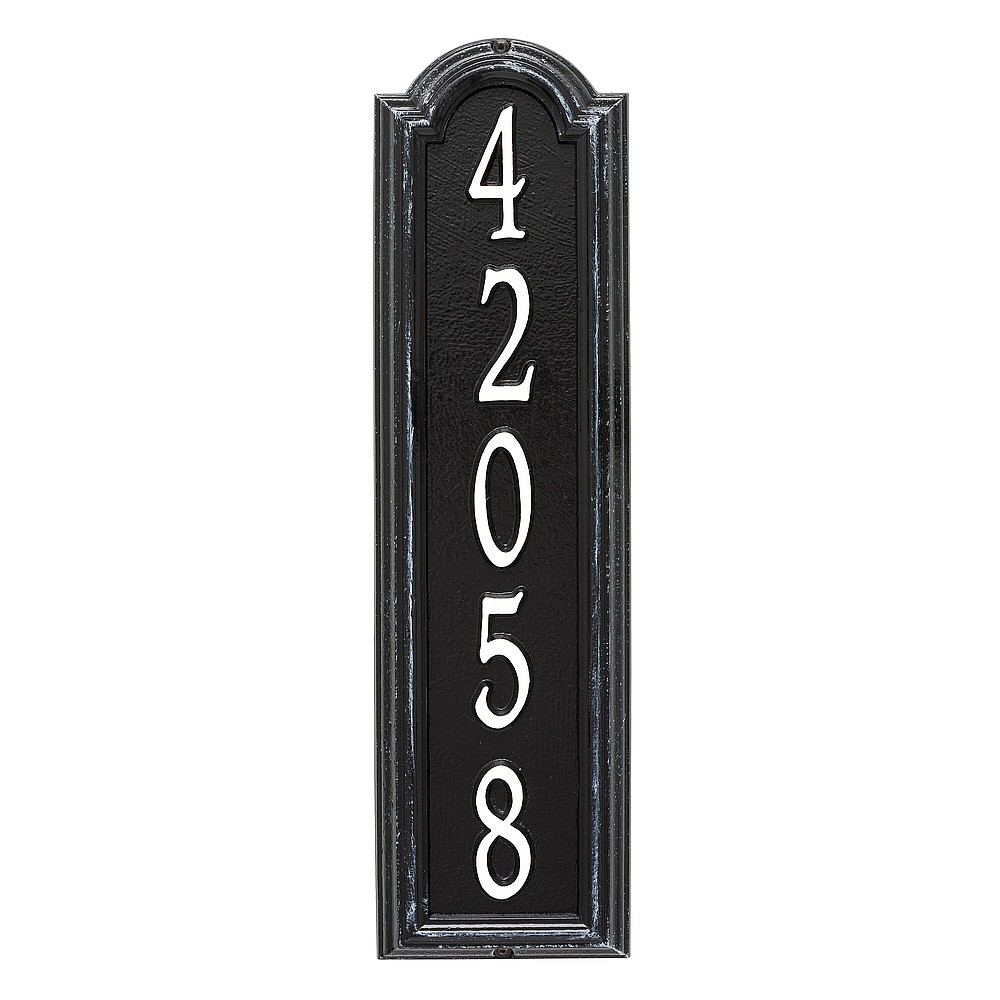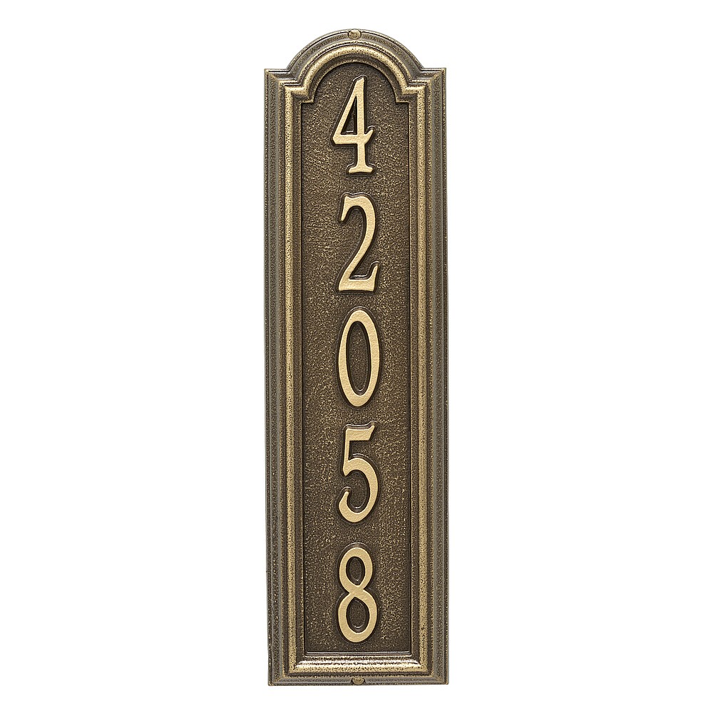 Dimensions (LxWxH): 21 x 5.75 x 1.25 The Whitehall Products Manchester Vertical Address Plaque will add the finishing touch to your home and instantly improve curb appeal. This address plaque is made from rust-free cast aluminum providing excellent quality and durability. Made in the USA Cast from recycled aluminum – will not rust. Alumi-Shield™ All Weather Coatings: A Whitehall Exclusive Enhances curb appeal while adding value to your home Personalization is permanently cast into the sign
