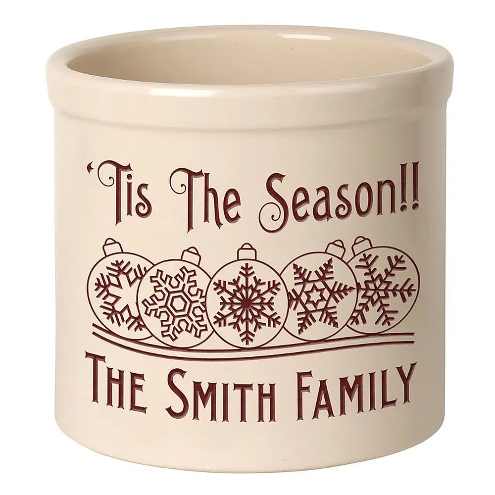 Assembled Dimensions (LxWxH): 9.75″ x 9.75″ x 9″ Whether your planting herbs and flowers, storing kitchen utensils or chilling beverages for a weekend gathering, these versatile two-gallon crocks are practical and personal adding a welcome addition to any abode. We will expertly carve your message to the surface of the crock, making a unique family heirloom that will be cherished through the years. Ideal uses: planter, ice bucket, door stop, magazine holder, utensil holder, house marker the possibilities are endless! Thoughtful and affordable solution for housewarming, wedding or anniversary gifts. Give your entryway a little personality when you use this personalized crock as a planter. Made-to-order, each of the crocks detailed design and personalization is deeply carved and then hand-painted with weather resistant finishes and glaze. Suitable for both indoor and outdoor use. Handcrafted in the USA from substantial and sturdy stoneware. A timeless piece to last for generations. Two-gallon, oversized crocks accommodate sizeable amounts of goods for storage. Crocks weigh a substantial 12 lbs., making for sturdy and durable storability. Hand wash. Avoid freezing.