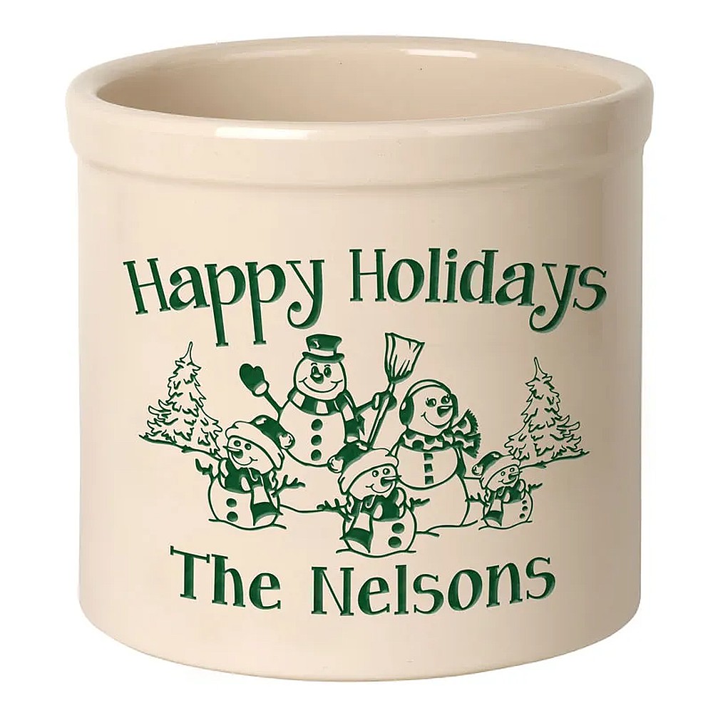 Assembled Dimensions (LxWxH): 9.75″ x 9.75″ x 9″ Whether your planting herbs and flowers, storing kitchen utensils or chilling beverages for a weekend gathering, these versatile two-gallon crocks are practical and personal adding a welcome addition to any abode. We will expertly carve your message to the surface of the crock, making a unique family heirloom that will be cherished through the years. Ideal uses: planter, ice bucket, door stop, magazine holder, utensil holder, house marker the possibilities are endless! Thoughtful and affordable solution for housewarming, wedding or anniversary gifts. Give your entryway a little personality when you use this personalized crock as a planter. Made-to-order, each of the crocks detailed design and personalization is deeply carved and then hand-painted with weather resistant finishes and glaze. Suitable for both indoor and outdoor use. Handcrafted in the USA from substantial and sturdy stoneware. A timeless piece to last for generations. Two-gallon, oversized crocks accommodate sizeable amounts of goods for storage. Crocks weigh a substantial 12 lbs., making for sturdy and durable storability. Hand wash. Avoid freezing.