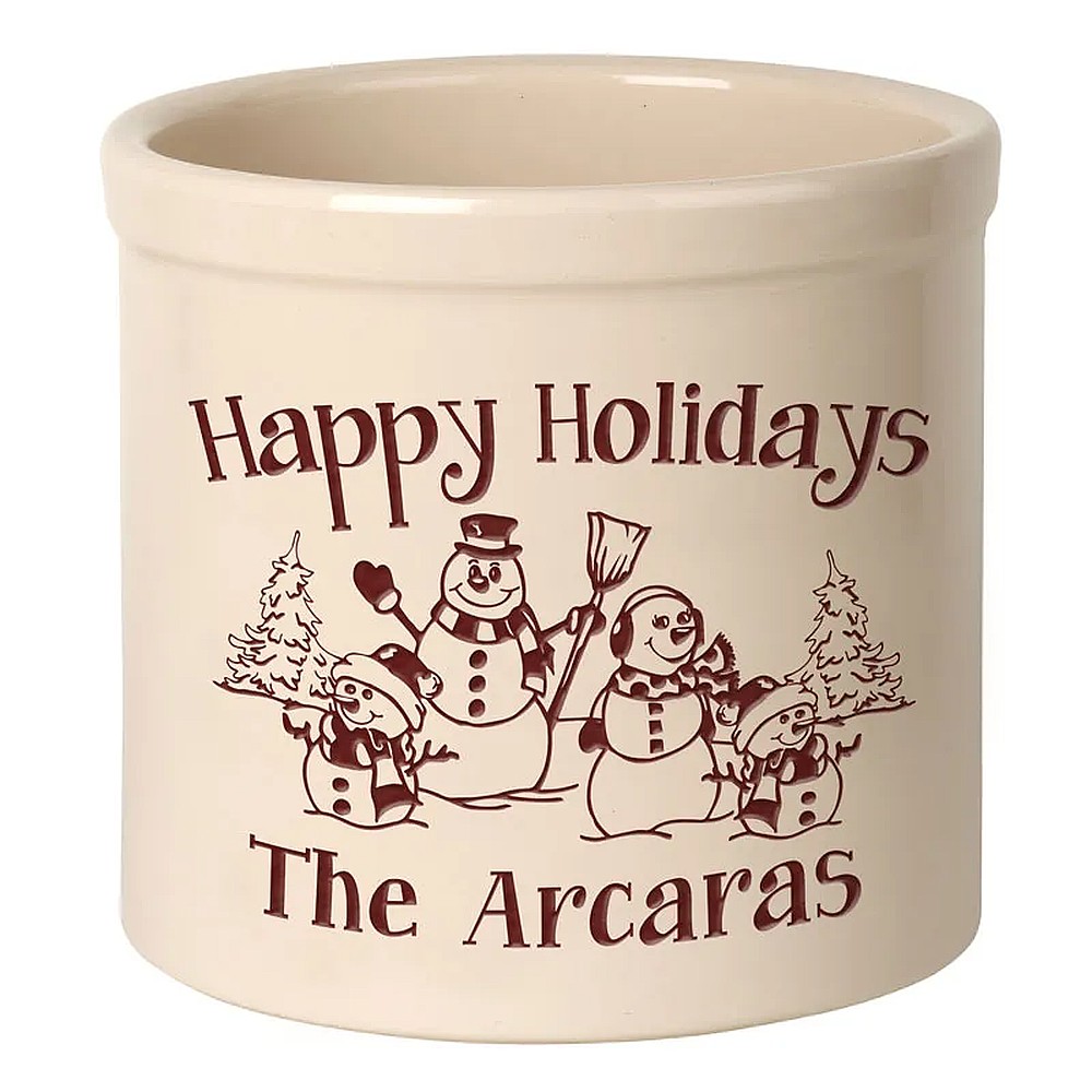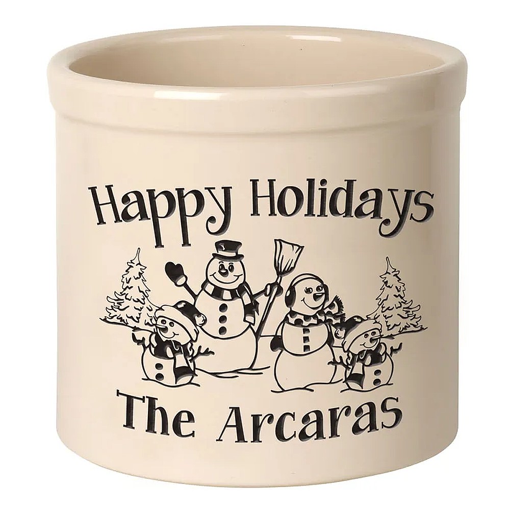Assembled Dimensions (LxWxH): 9.75″ x 9.75″ x 9″ Whether your planting herbs and flowers, storing kitchen utensils or chilling beverages for a weekend gathering, these versatile two-gallon crocks are practical and personal adding a welcome addition to any abode. We will expertly carve your message to the surface of the crock, making a unique family heirloom that will be cherished through the years. Ideal uses: planter, ice bucket, door stop, magazine holder, utensil holder, house marker the possibilities are endless! Thoughtful and affordable solution for housewarming, wedding or anniversary gifts. Give your entryway a little personality when you use this personalized crock as a planter. Made-to-order, each of the crocks detailed design and personalization is deeply carved and then hand-painted with weather resistant finishes and glaze. Suitable for both indoor and outdoor use. Handcrafted in the USA from substantial and sturdy stoneware. A timeless piece to last for generations. Two-gallon, oversized crocks accommodate sizeable amounts of goods for storage. Crocks weigh a substantial 12 lbs., making for sturdy and durable storability. Hand wash. Avoid freezing.