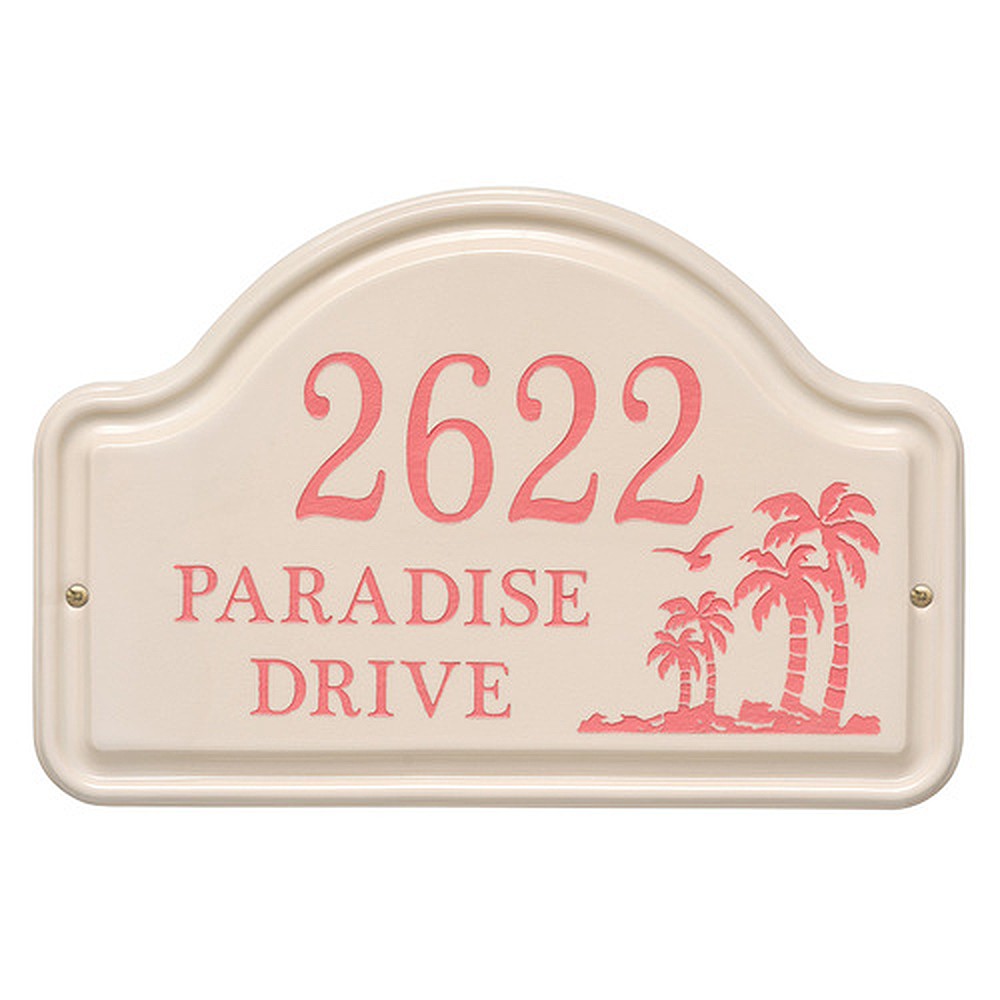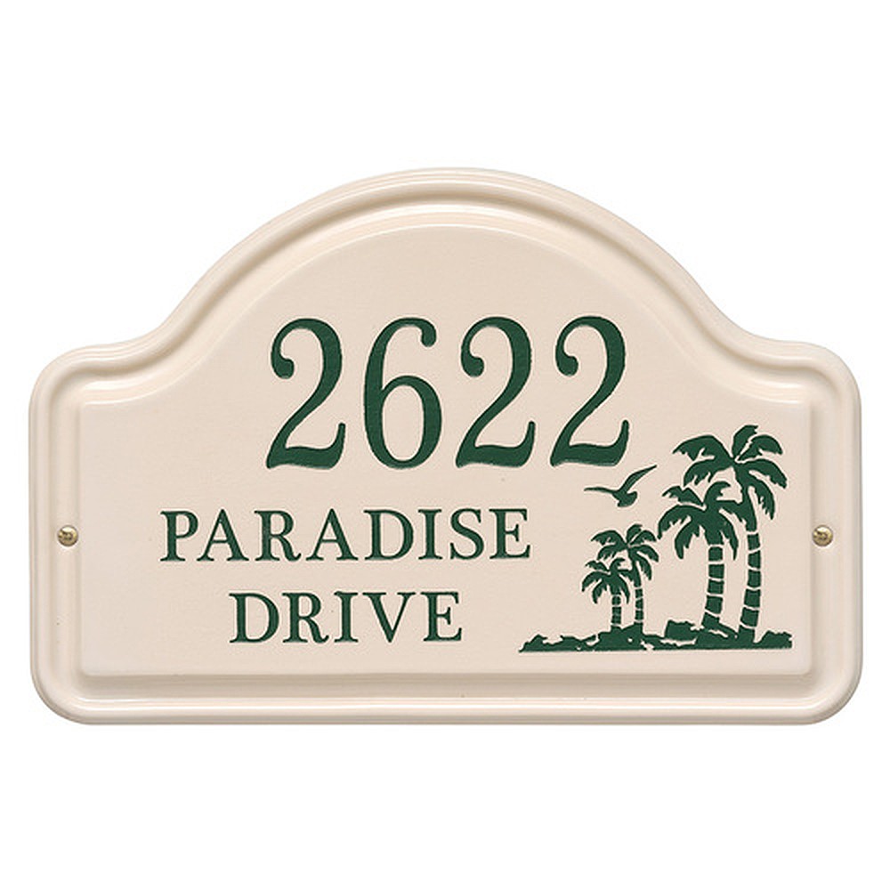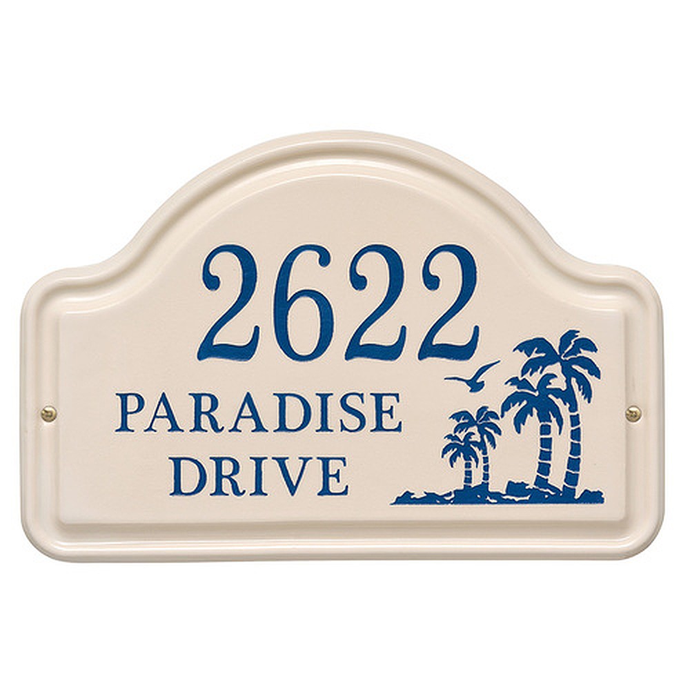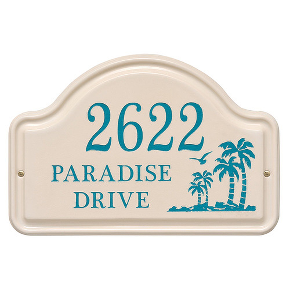 Dimensions (LxWxH): 16.5″ X 11″ X .875″ The coastal style of the Palm Ceramic Arch Plaque is an attractive finishing touch for your home. Handcrafted in the USA from premium Tennessee clay. The coastal style of the Palm Ceramic Arch Plaque is an attractive finishing touch for your home. Handcrafted in the USA from premium Tennessee clay. Detailed design and personalization is deeply carved and then hand painted in weather resistant finishes. Standard Size Address Plaque Perfect for housewarming, lake house, or wedding / anniversary gift Made in the USA.