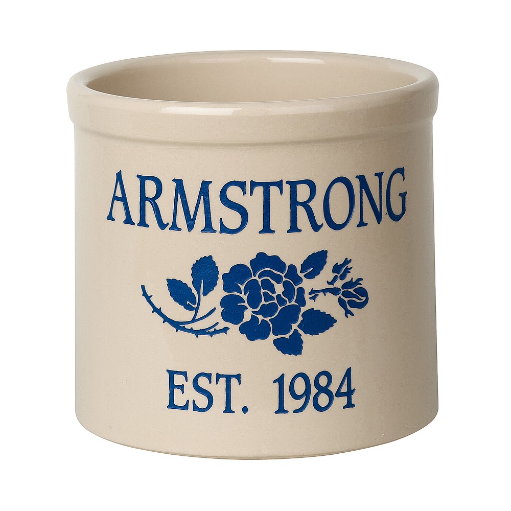 Dimensions (LxWxH): 10″ x 10″ x 9″ Dimensions (LxWxH): 10″ x 10″ x 9″ This personalized rose stem established crock is a unique and memorable way to display a couple’s marriage and anniversary date. A Personalized crock is a perfect gift to commemorate all of life’s celebrations. Makes a great personalized wedding, anniversary, or house warming gift. Handcrafted in the USA from premium Tennessee clay, then protected with a lead free glaze. The rose stem is a permanent part of the design. Detailed design and personalization is deeply carved and then hand painted in weather resistant finishes. Made in the USA. A Personalized crock is a perfect gift to commemorate all of life’s celebrations. Makes a great personalized wedding, anniversary, or house warming gift. Handcrafted in the USA from premium Tennessee clay, then protected with a lead free glaze. The rose stem is a permanent part of the design. Detailed design and personalization is deeply carved and then hand painted in weather resistant finishes. Made in the USA.