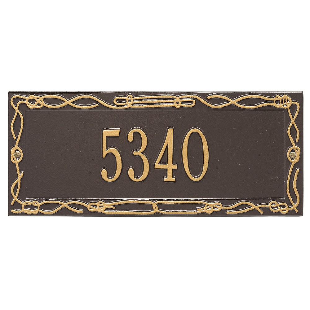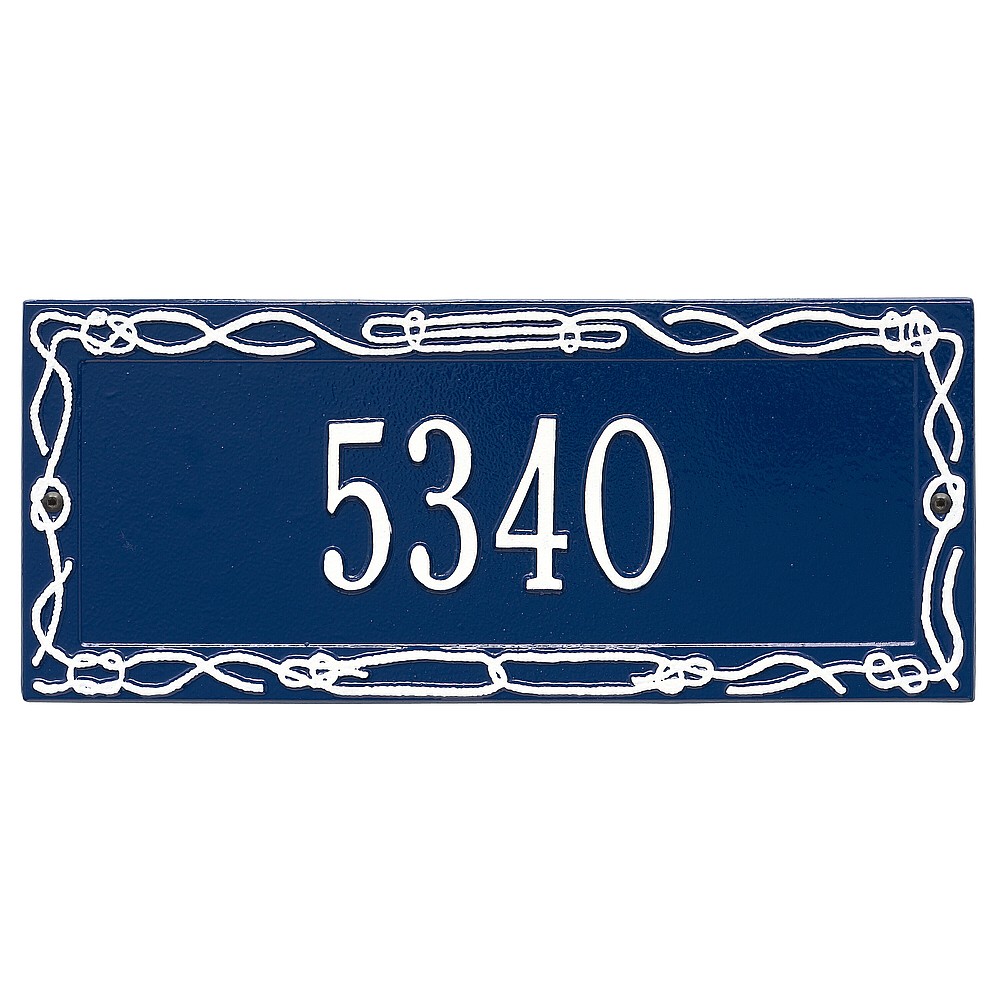 Dimensions (LxWxH): 17″ x 7.25″ x .375″ This coastal style Sailor’s Knot Address Plaque is an attractive finishing touch for your home. Features a handmade, premium grade aluminum casting that showcases an intricate, detailed nautical design. Manufactured from cast, high-density aluminum alloy and protected by our exclusive Alumi-Shieldâ„¢ all weather coatings. Alumi-Shieldâ„¢ All Weather Coating: A Whitehall Exclusive Alumi-Shieldâ„¢ – Protects against the harshest weather and environmental elements. Extends the product life and maintains the look and function. Made in the USA.