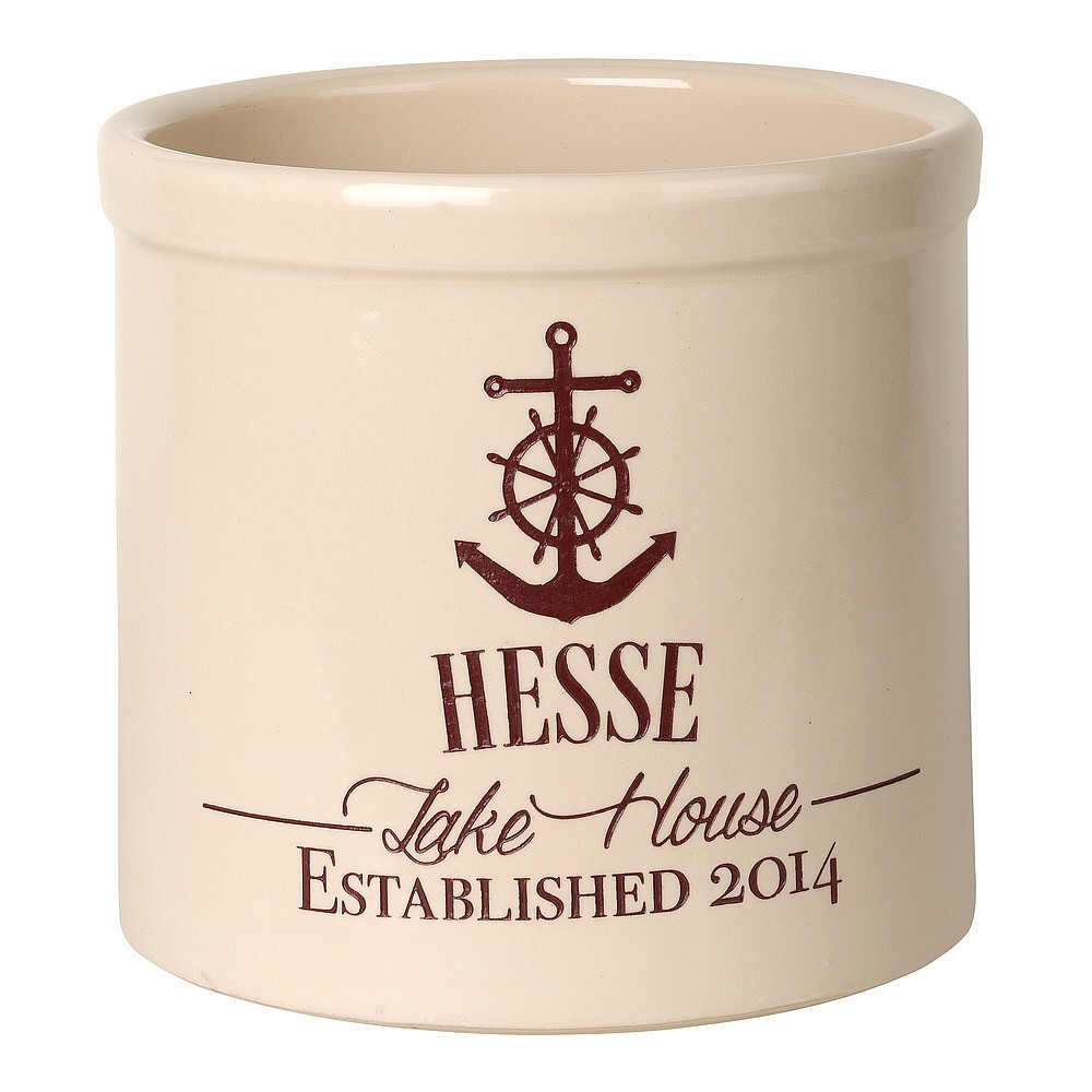 Assembled Dimensions (LxWxH): 9.75″ x 9.75″ x 9″ Whether your planting herbs and flowers, storing kitchen utensils or chilling beverages for a weekend gathering, these versatile two-gallon crocks are practical and personal adding a welcome addition to any abode. We will expertly carve your message to the surface of the crock, making a unique family heirloom that will be cherished through the years. Ideal uses: planter, ice bucket, door stop, magazine holder, utensil holder, house marker the possibilities are endless! Thoughtful and affordable solution for housewarming, wedding or anniversary gifts. Give your entryway a little personality when you use this personalized crock as a planter. Made-to-order, each of the crocks detailed design and personalization is deeply carved and then hand-painted with weather resistant finishes and glaze. Suitable for both indoor and outdoor use. Handcrafted in the USA from substantial and sturdy stoneware. A timeless piece to last for generations. Two-gallon, oversized crocks accommodate sizeable amounts of goods for storage. Crocks weigh a substantial 12 lbs., making for sturdy and durable storability. Hand wash. Avoid freezing.