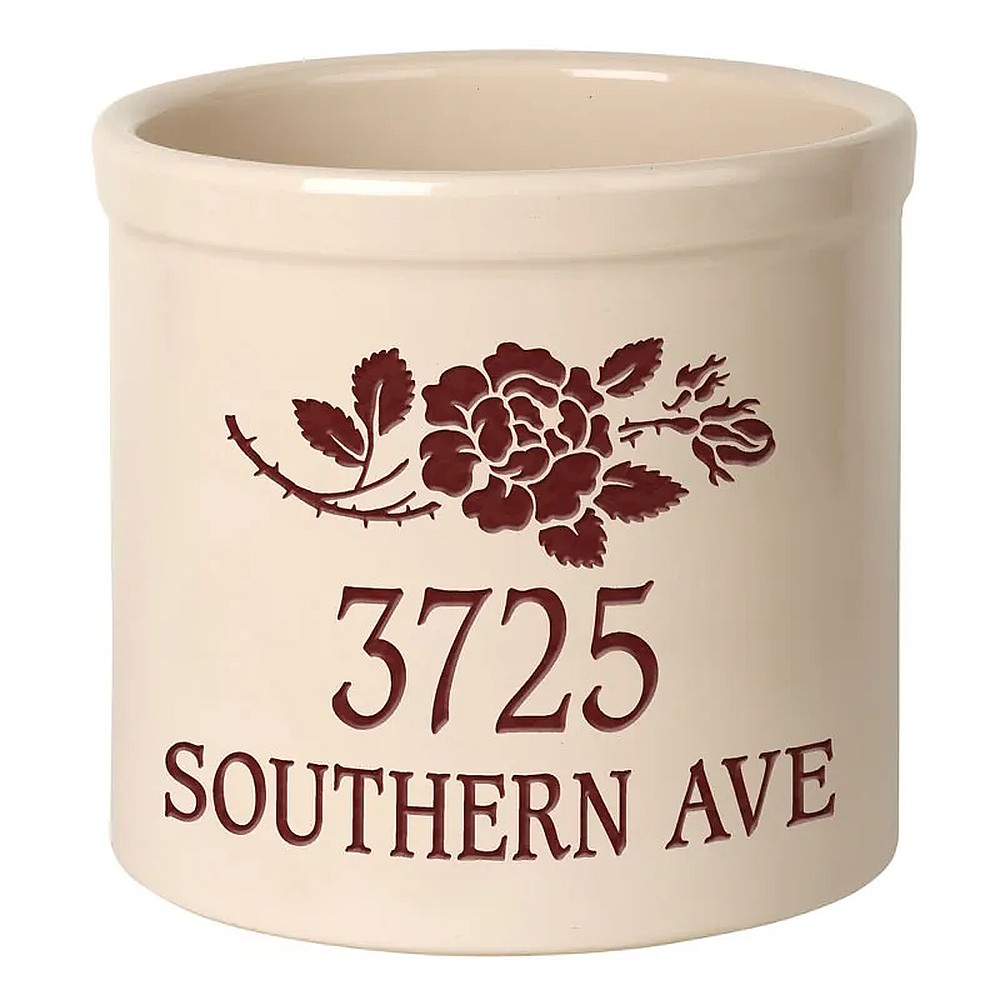 STORE SKU:Whitehall Personalized Top Center Rose Stem 2 Gallon Stoneware Crock – 4 Options