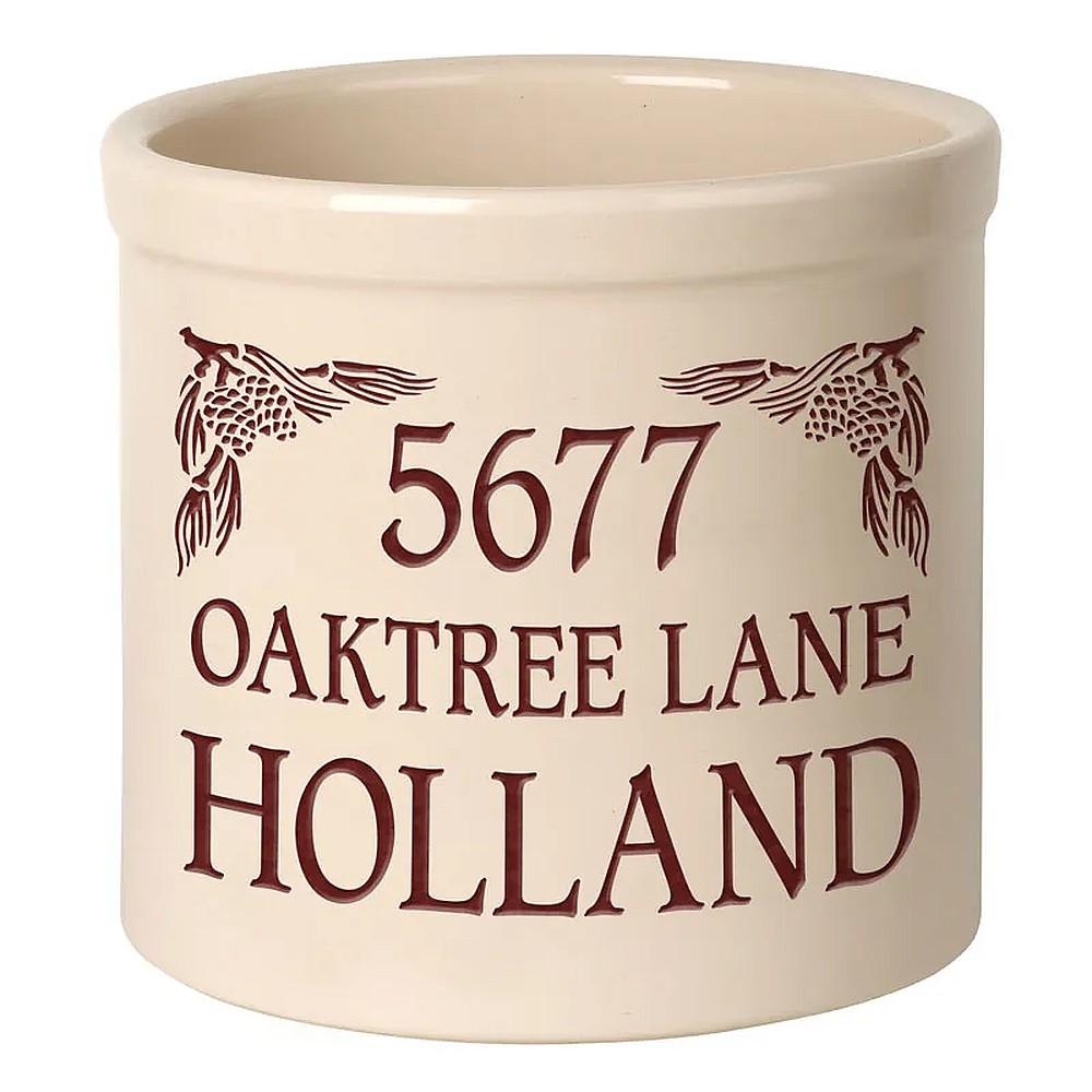 Whitehall Personalized Top Corner Pinecone 2 Gallon Stoneware Crock
