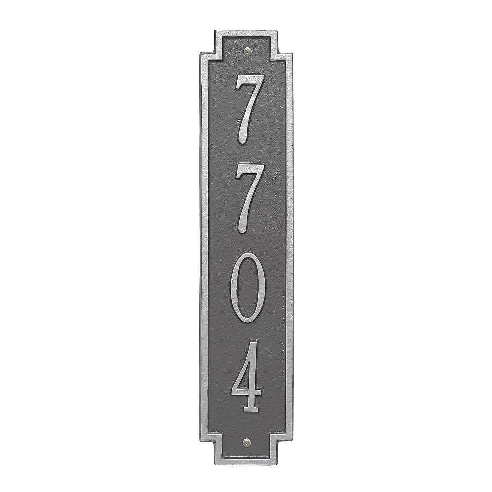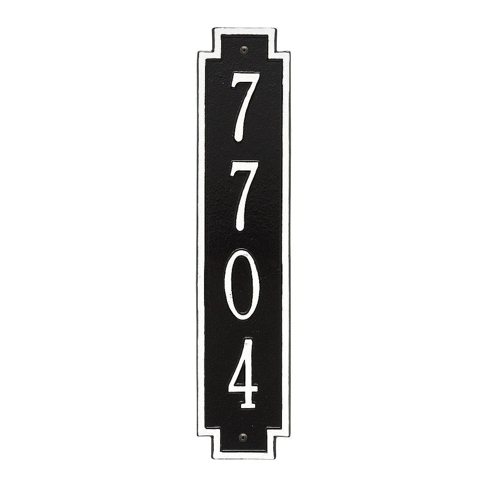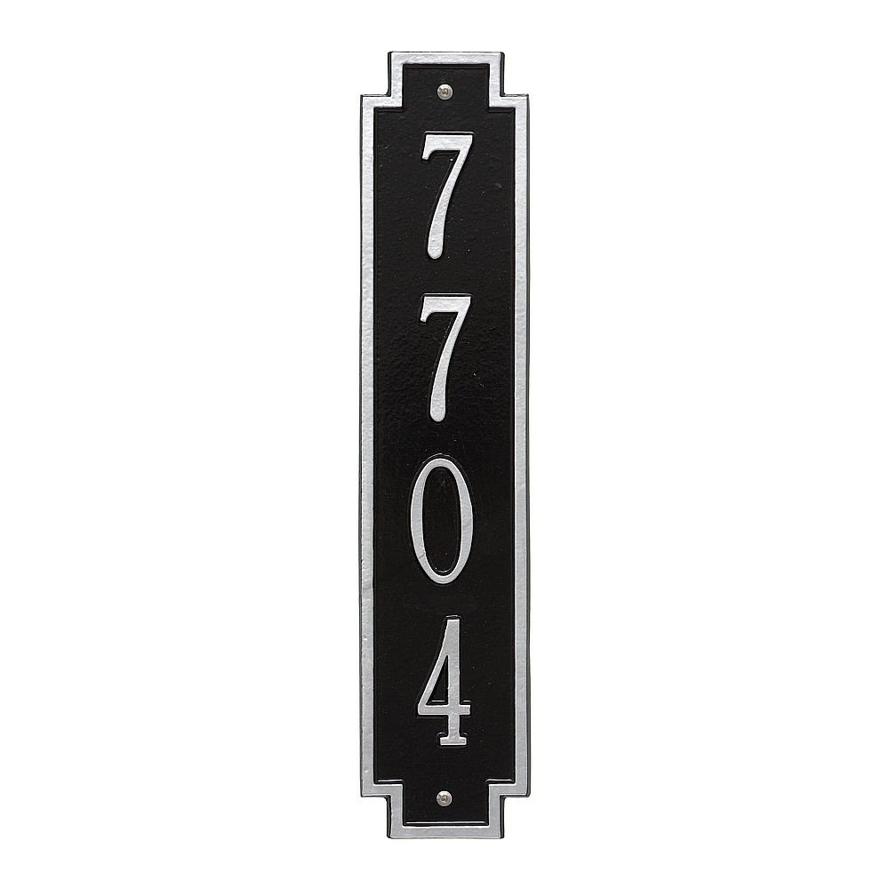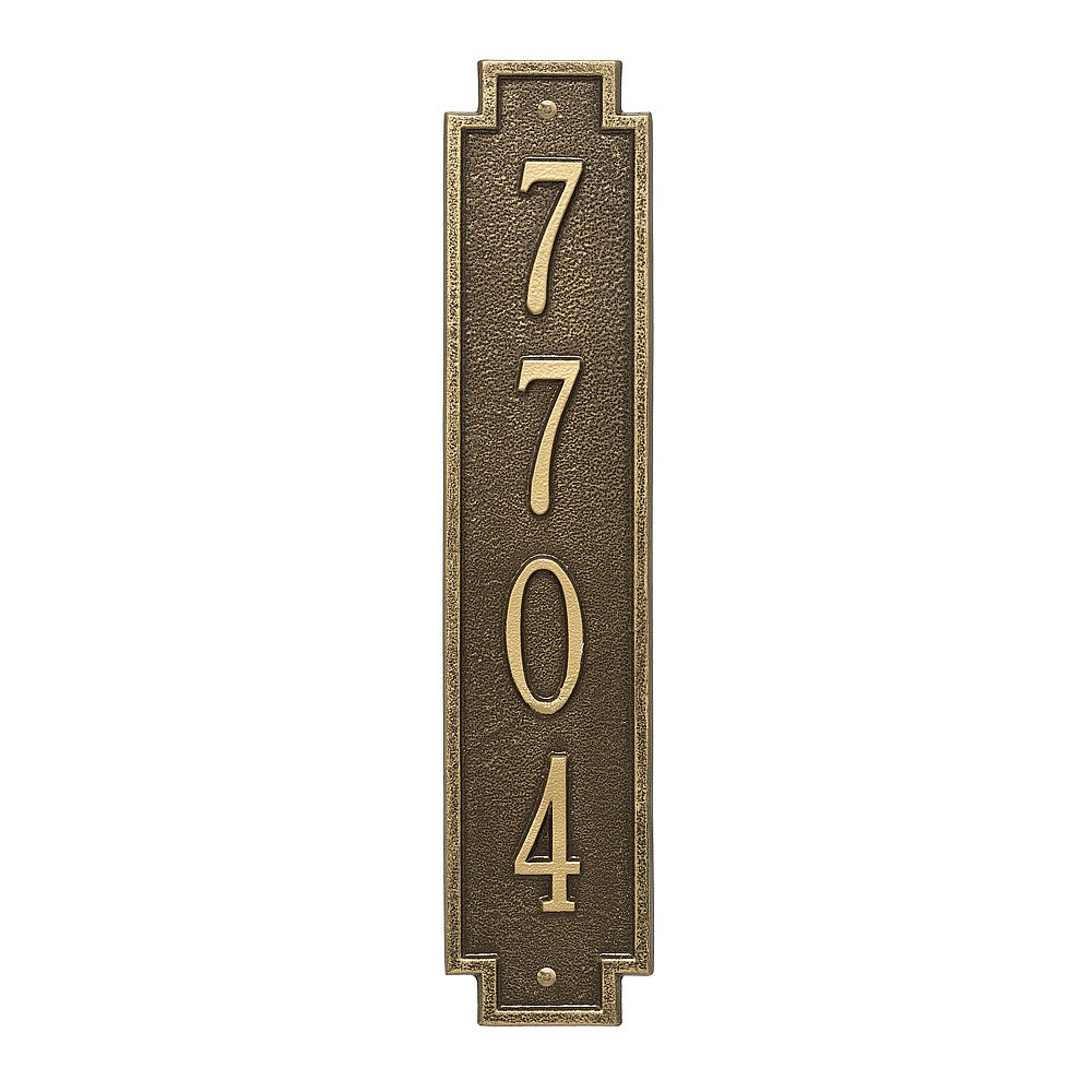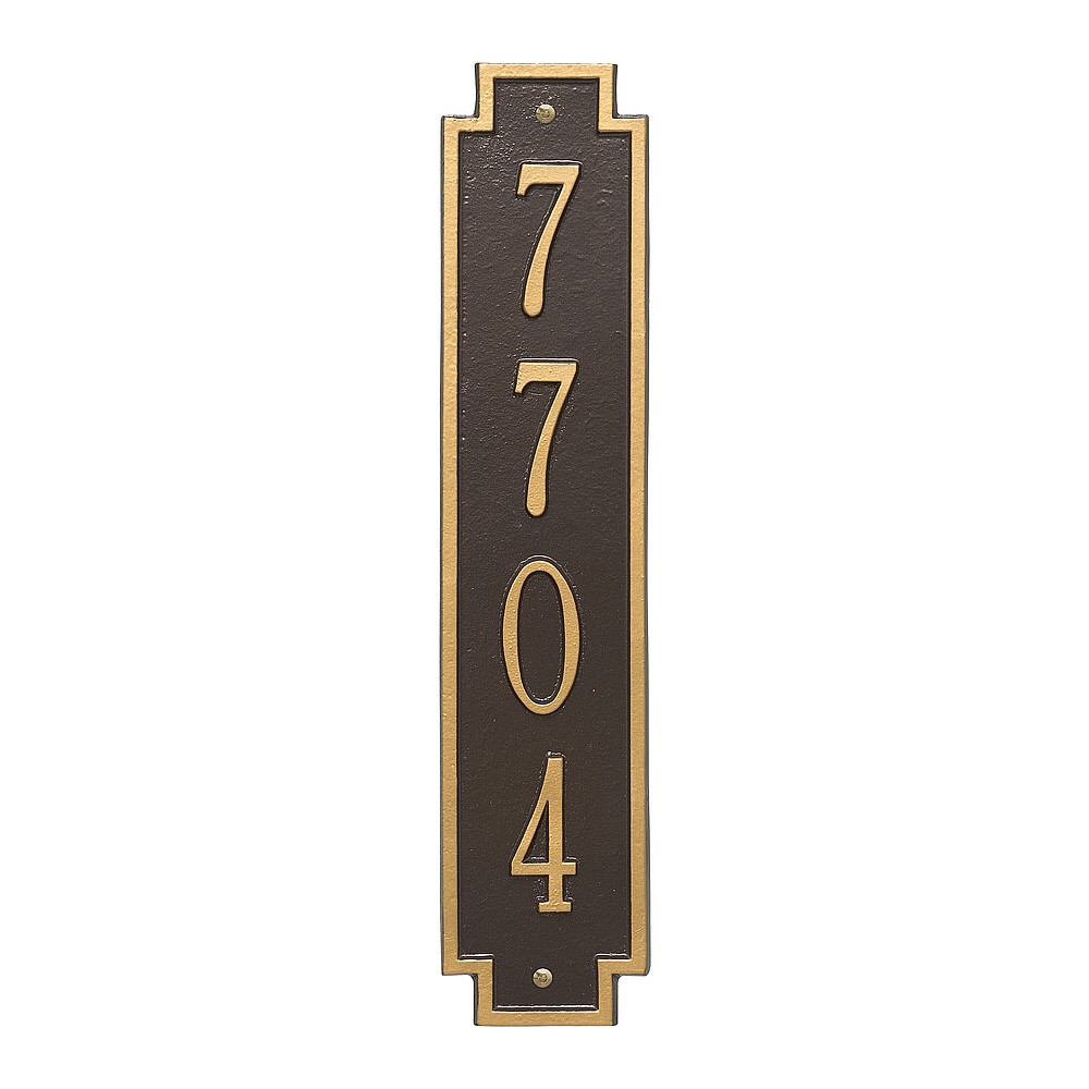 Dimensions (LxWxH): 19 x 4 x .375 The Whitehall Products Windsor Vertical Address Plaque will add the finishing touch to your home and instantly improve curb appeal. This address plaque is made from rust-free cast aluminum providing excellent quality and durability. Made in the USA Cast from recycled aluminum – will not rust. Alumi-Shieldâ„¢ All Weather Coatings: A Whitehall Exclusive Enhances curb appeal while adding value to your home Personalization is permanently cast into the sign