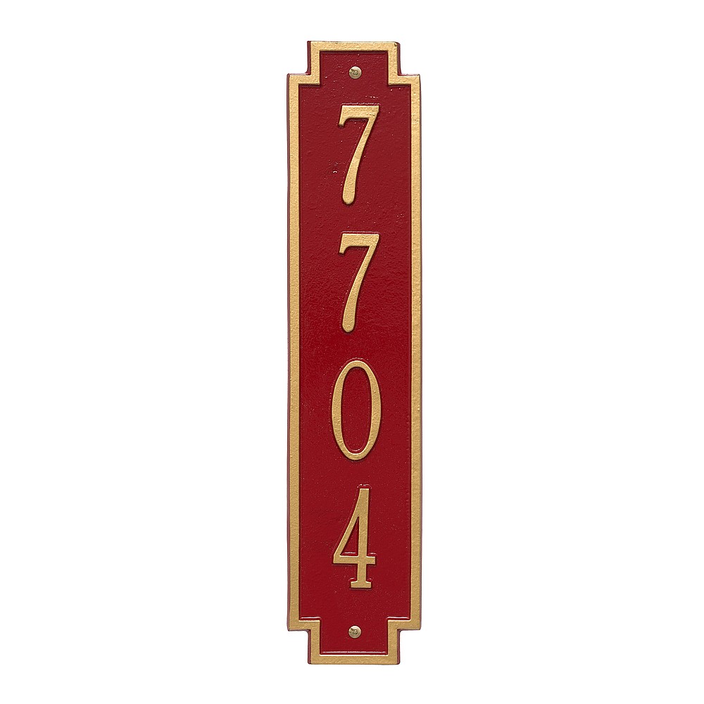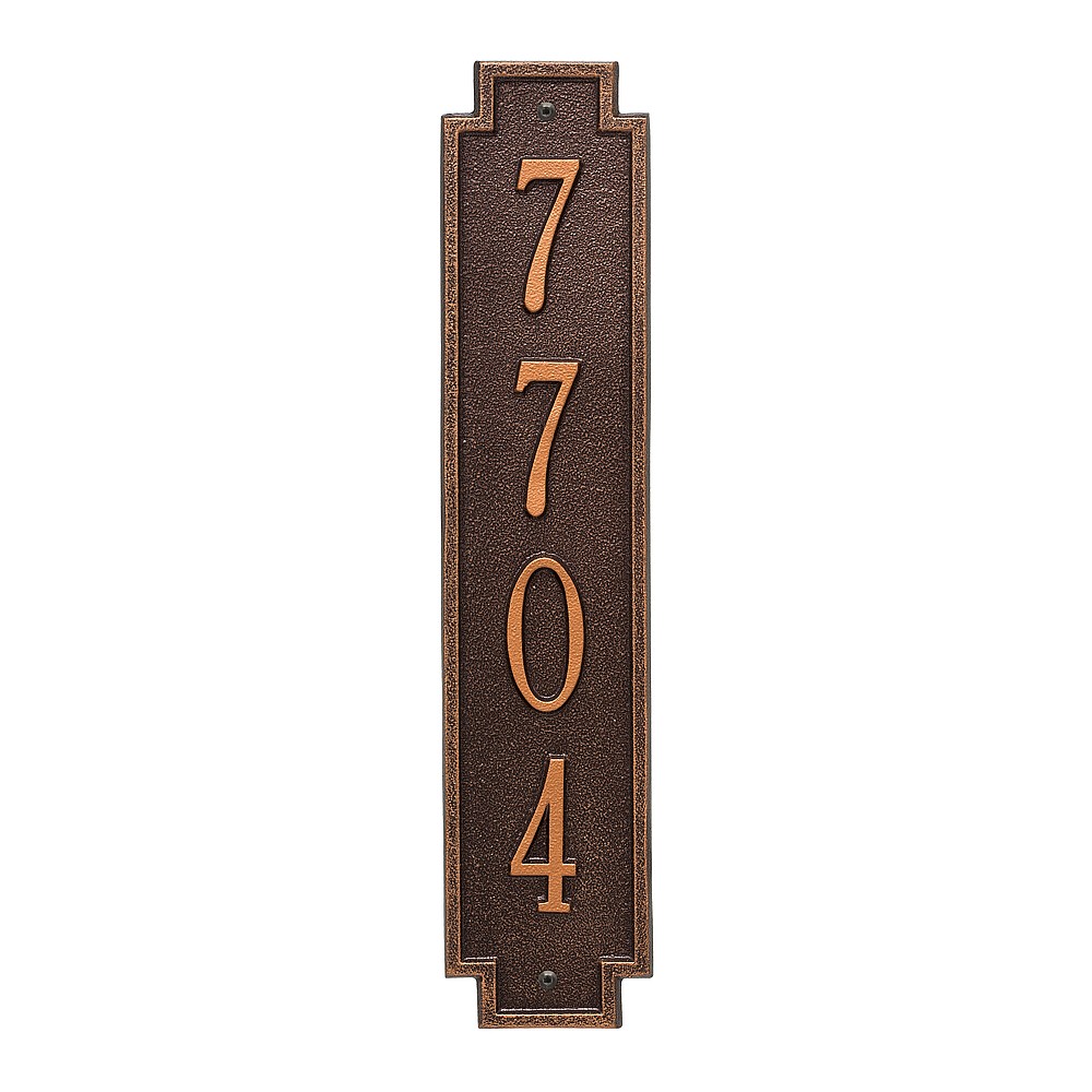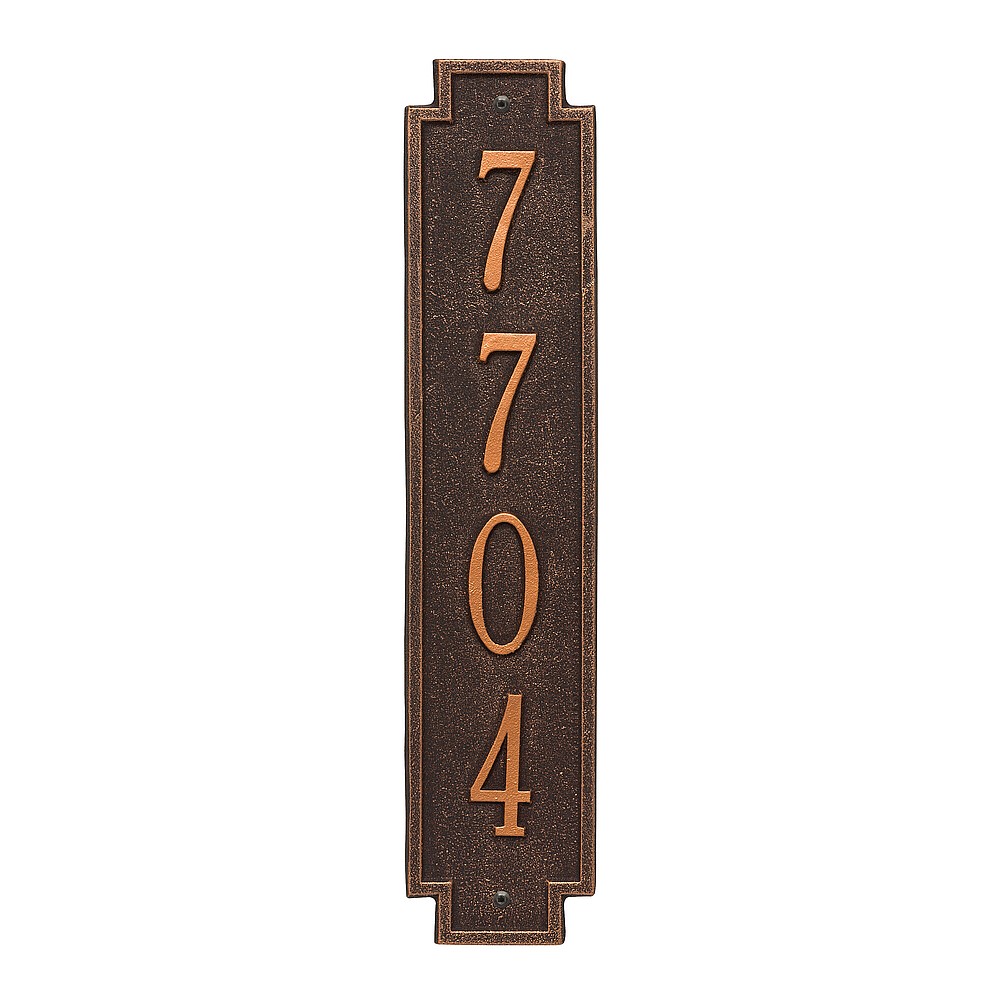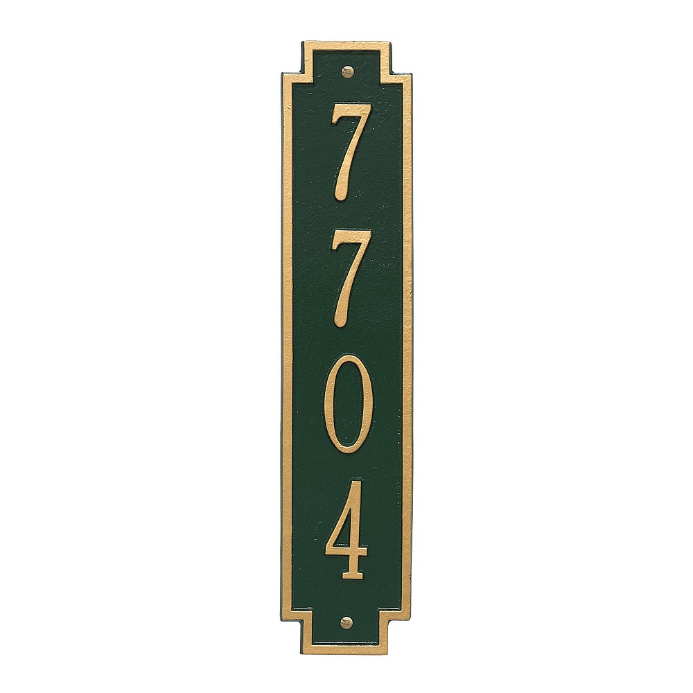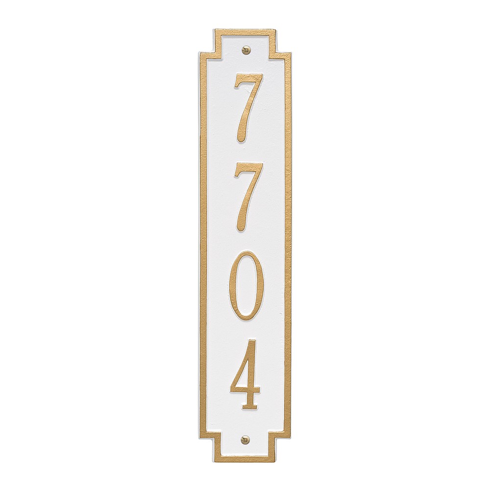 Dimensions (LxWxH): 19 x 4 x .375 The Whitehall Products Windsor Vertical Address Plaque will add the finishing touch to your home and instantly improve curb appeal. This address plaque is made from rust-free cast aluminum providing excellent quality and durability. Made in the USA Cast from recycled aluminum – will not rust. Alumi-Shieldâ„¢ All Weather Coatings: A Whitehall Exclusive Enhances curb appeal while adding value to your home Personalization is permanently cast into the sign