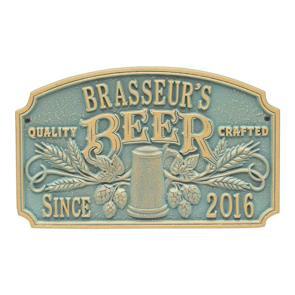 Dimensions (LxWxH): 14″ x 8.75x” x .35″ Cheers! The Quality Crafted Beer Arch Plaque is perfect for any home-brewer or craft beer aficionado. This handsome plaque creates a personalized touch in your private bar or man-cave. As the popularity of home brewing and home tap systems continues to rise, our quality crafted beer personalized bar sign is a great way to welcome your many guests. Handcrafted aluminum plaque for indoor or outdoor use. “Quality Crafted Beer” and “Since” are part of the design. Alumi-Shieldโ„ข – Protects against the harshest weather and environmental elements. Extends the product life and maintains the look and function. Made in the USA.