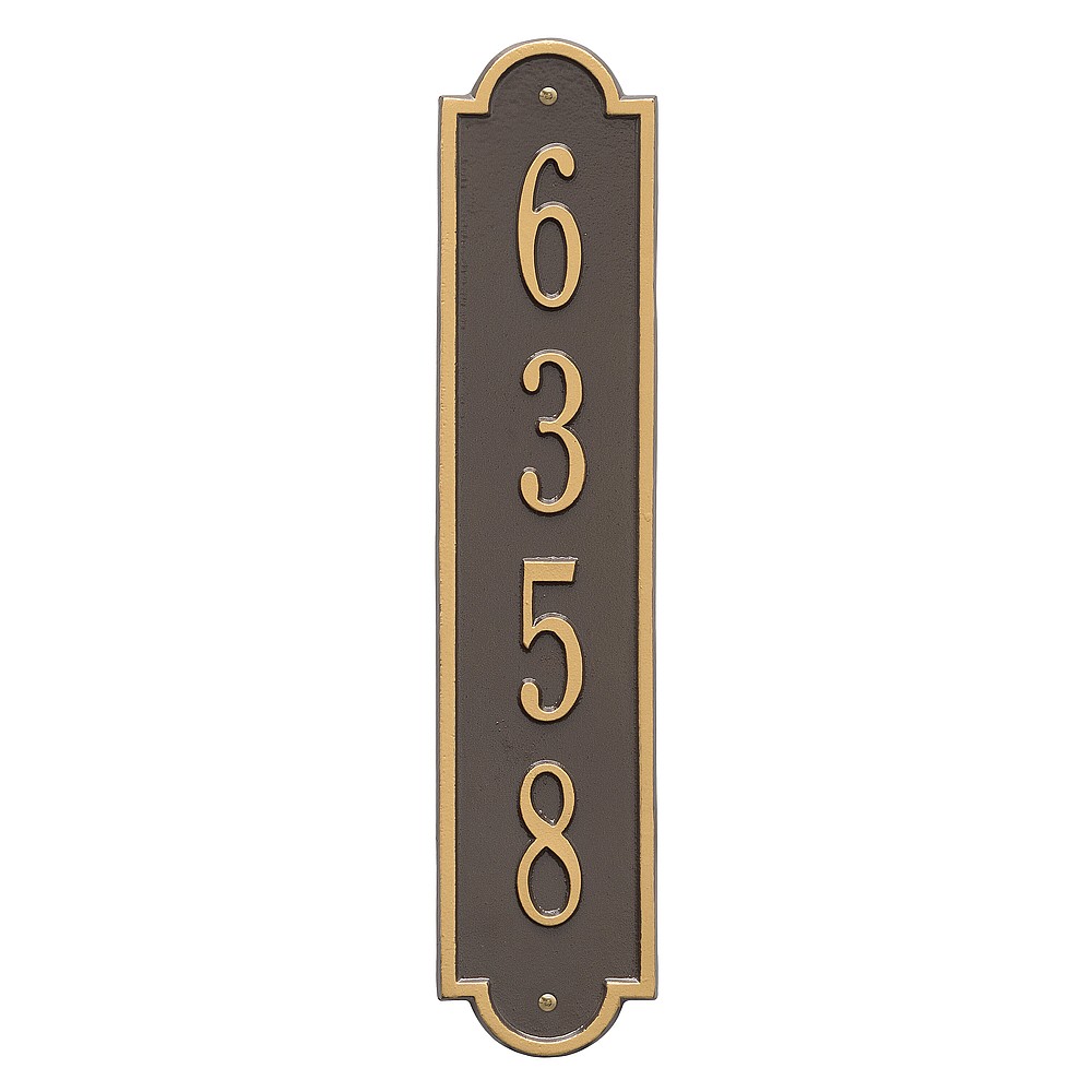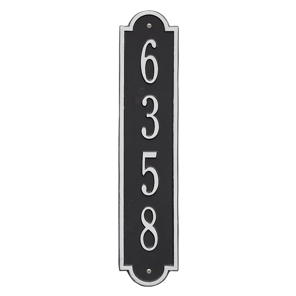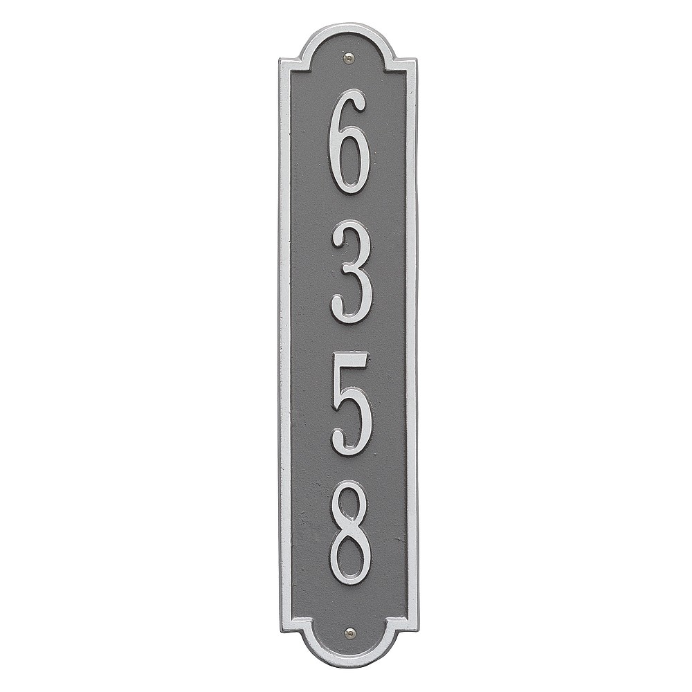 5 – 3″ characters or 7 – 1.75″ characters The Whitehall Products Richmond Address Plaque will accentuate your home exteriors with its elegance. The address plaque is made from rust-free cast aluminum providing excellent quality. Tall and slim, it is a good choice for entryways that need a Vertical Address Plaque Made in the USA Cast from recycled aluminum – will not rust. Alumi-Shield™ All Weather Coatings: A Whitehall Exclusive Enhances curb appeal while adding value to your home Personalization is permanently cast into the sign