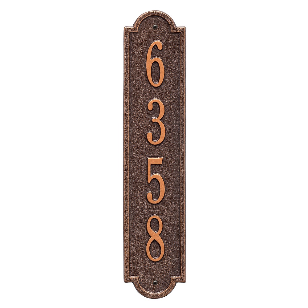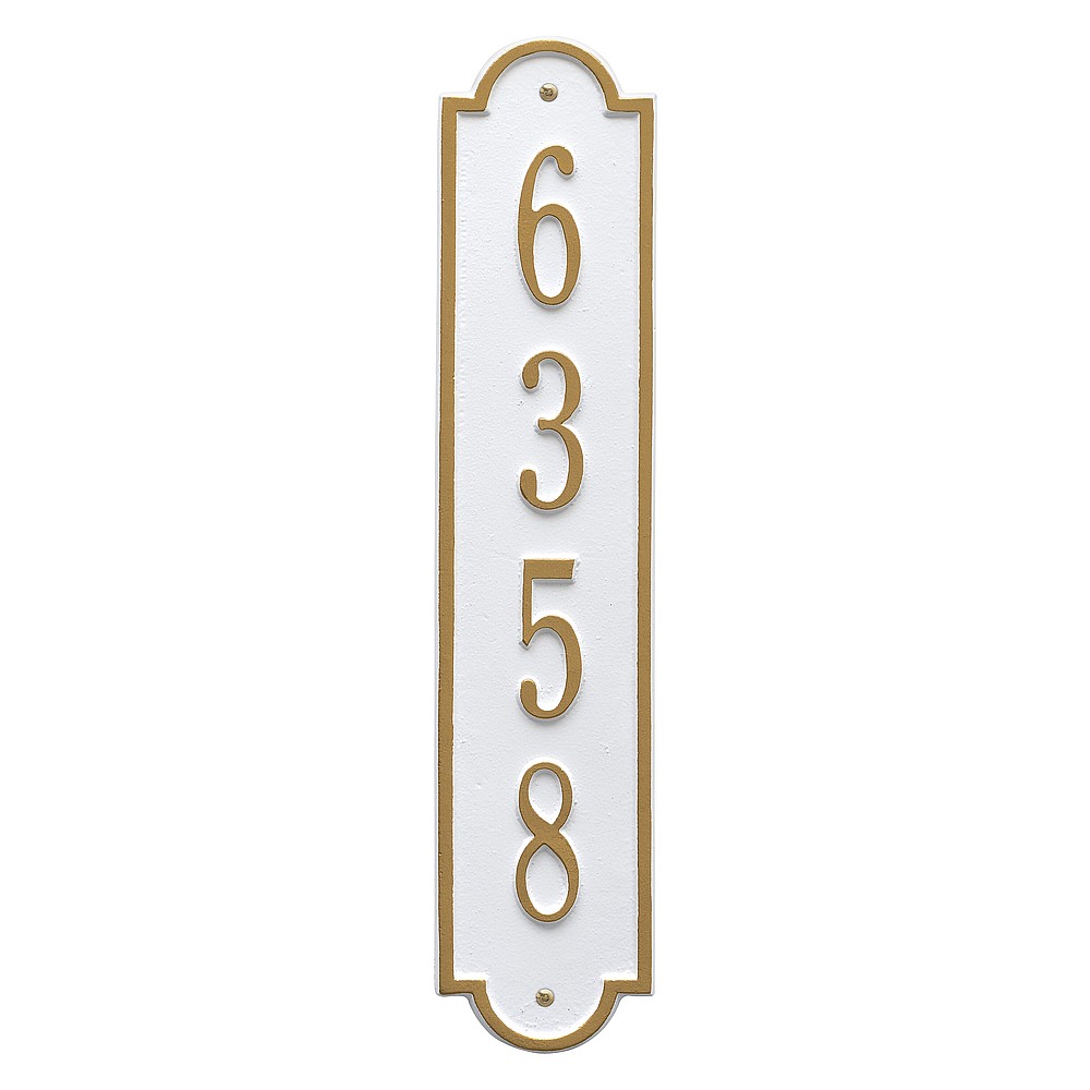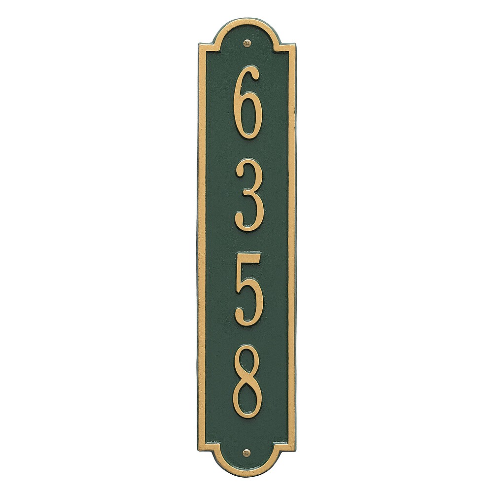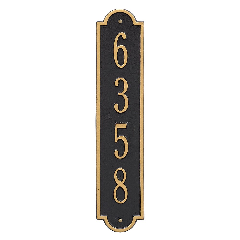 5 – 3″ characters or 7 – 1.75″ characters The Whitehall Products Richmond Address Plaque will accentuate your home exteriors with its elegance. The address plaque is made from rust-free cast aluminum providing excellent quality. Tall and slim, it is a good choice for entryways that need a Vertical Address Plaque Made in the USA Cast from recycled aluminum – will not rust. Alumi-Shield™ All Weather Coatings: A Whitehall Exclusive Enhances curb appeal while adding value to your home Personalization is permanently cast into the sign