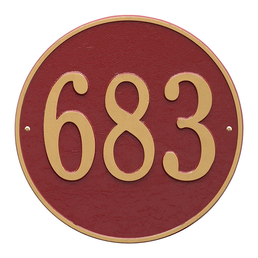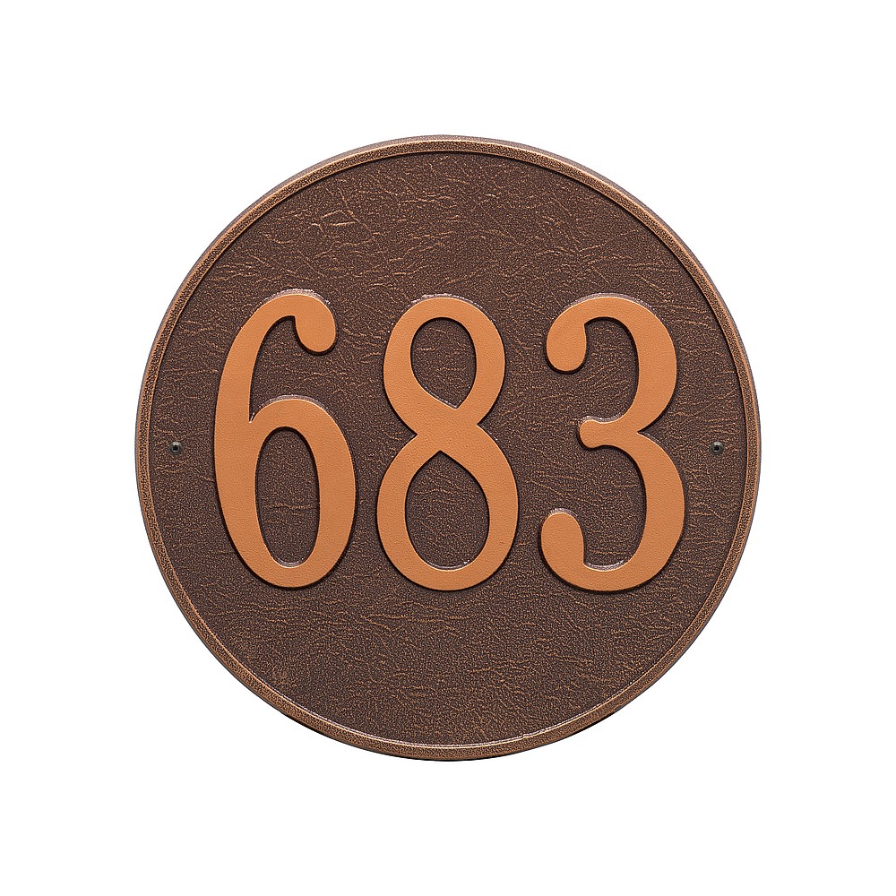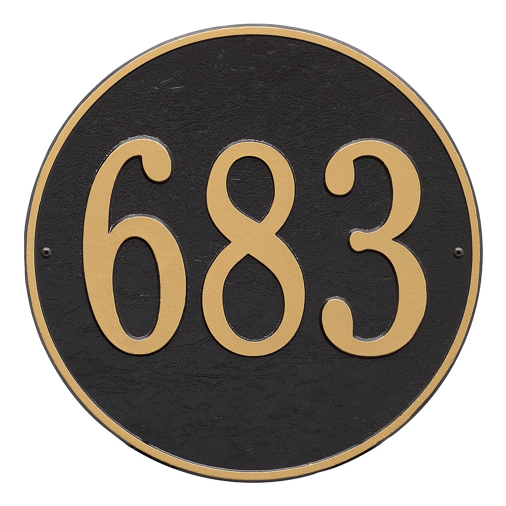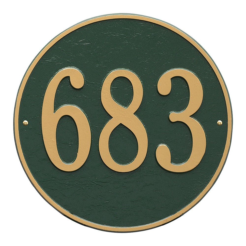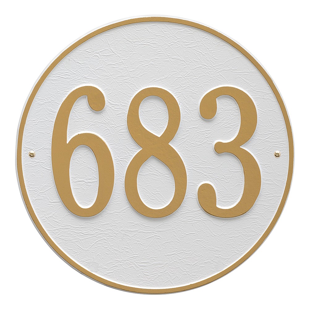 3 – 7″ numbers or 5 – 4.5″ numbers A classic round house number sign that will provide a nice upgrade to the curb appeal of your home. Home address plaques also make great gifts for any special occasion. Made in the USA Cast from recycled aluminum – will not rust. Alumi-Shield™ All Weather Coatings: A Whitehall Exclusive Enhances curb appeal while adding value to your home Personalization is permanently cast into the sign