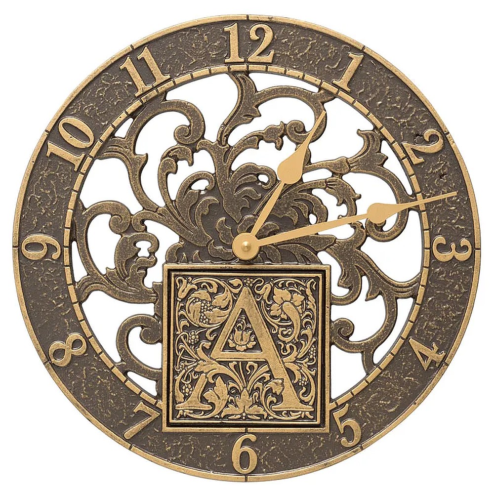 STORE SKU:Whitehall Silhouette Monogram 12" Personalized Indoor Outdoor Wall Clock – 2 Options
