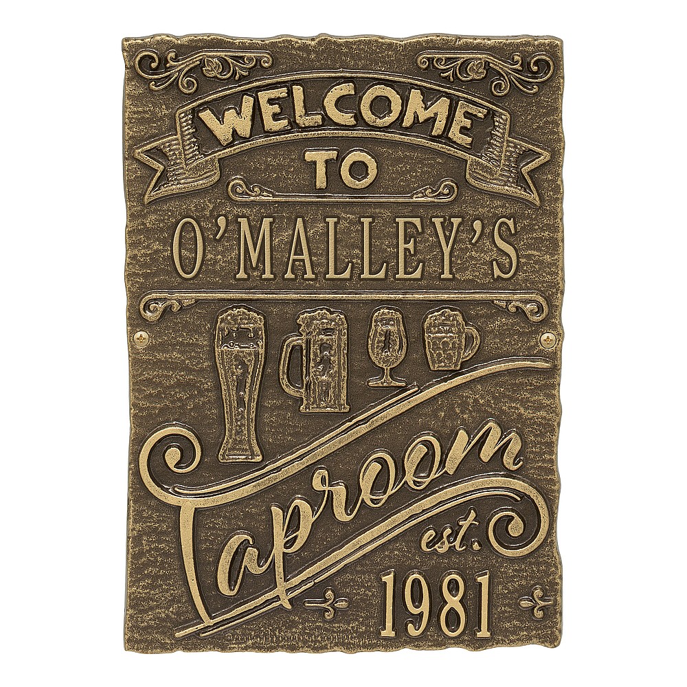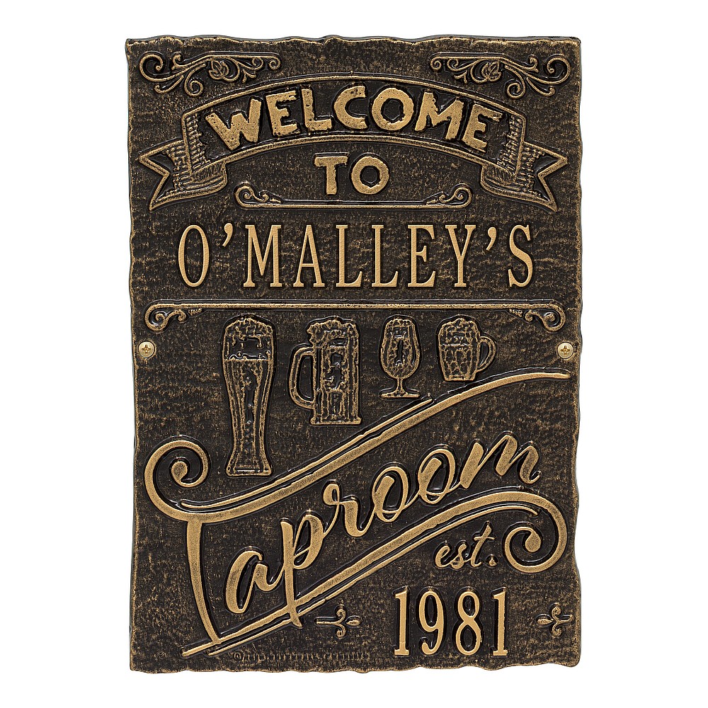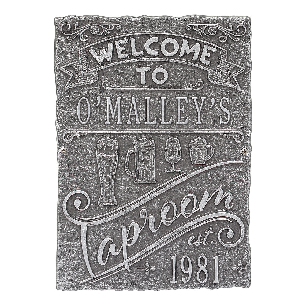 Dimensions (LxWxH): 9″ x 12.5″ x .35″ Cheers! The Tap Room Brew Pub Plaque is perfect for any home-brewer or craft beer aficionado. This handsome plaque creates a personalized touch in your private bar or man-cave. As the popularity of home brewing and home tap systems continues to rise, our tap room brew pub personalized bar sign is a great way to welcome your many guests. Handcrafted aluminum plaque for indoor or outdoor use. “Taproom” and “est” are part of the design. Alumi-Shieldâ„¢ – Protects against the harshest weather and environmental elements. Extends the product life and maintains the look and function. Made in the USA.