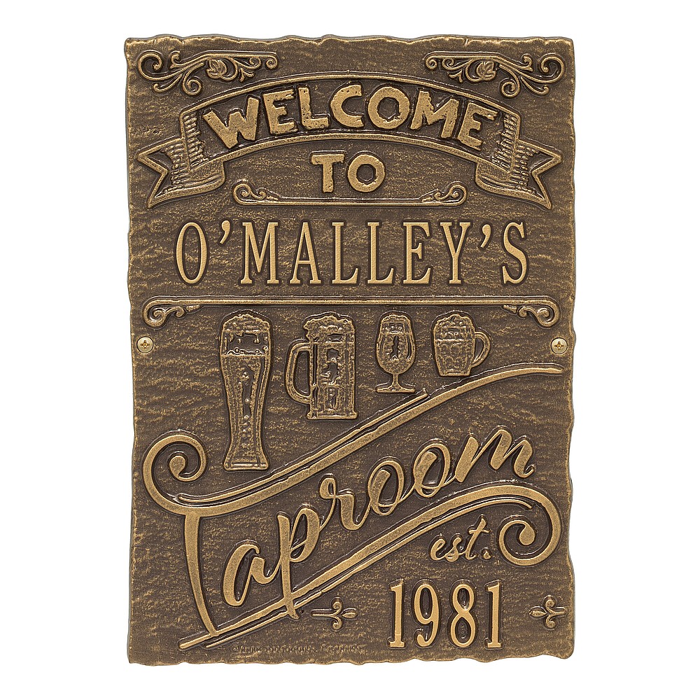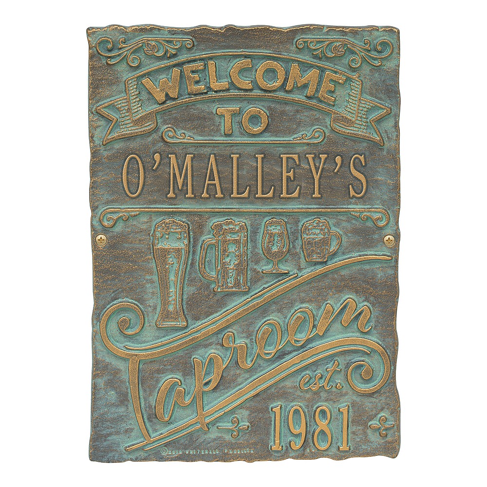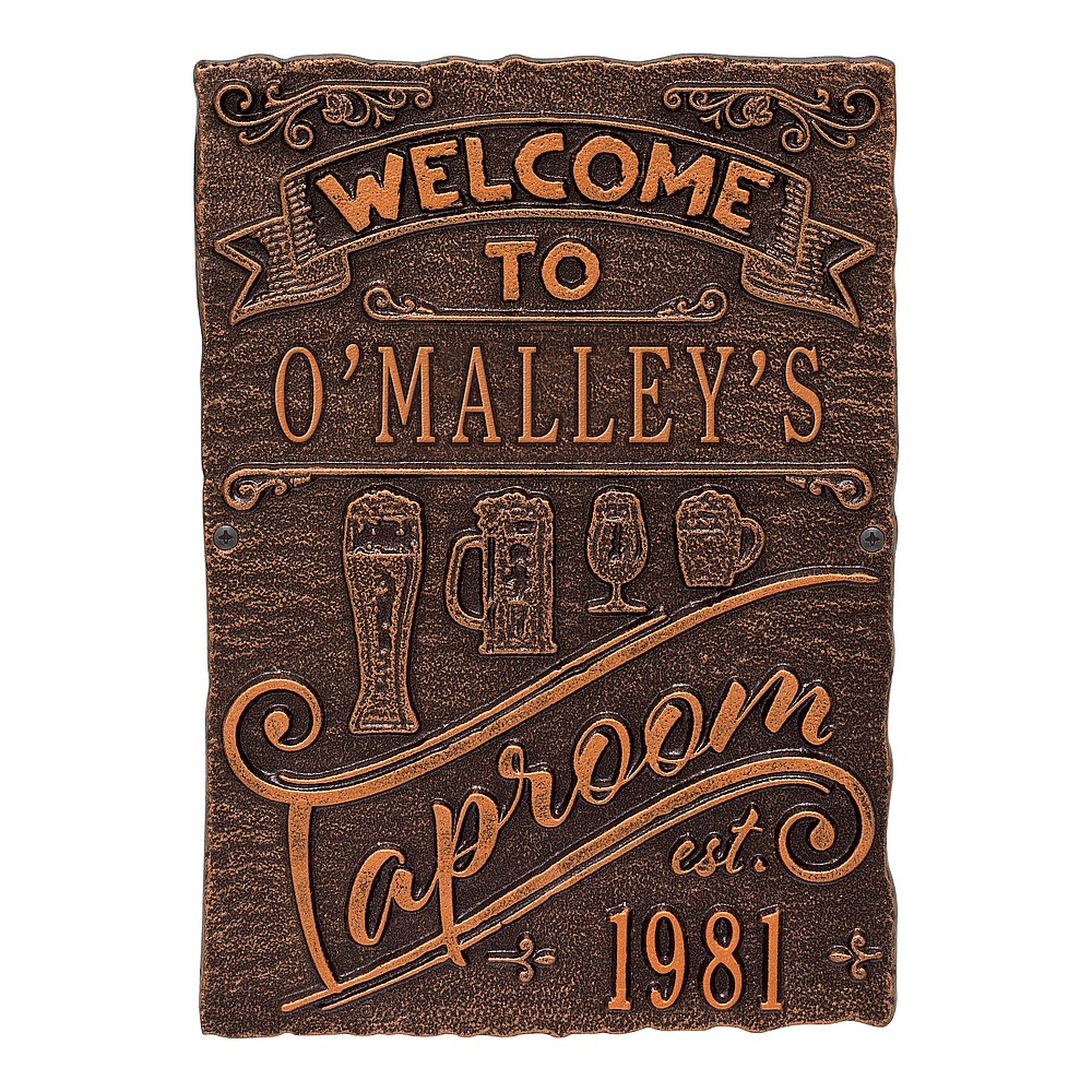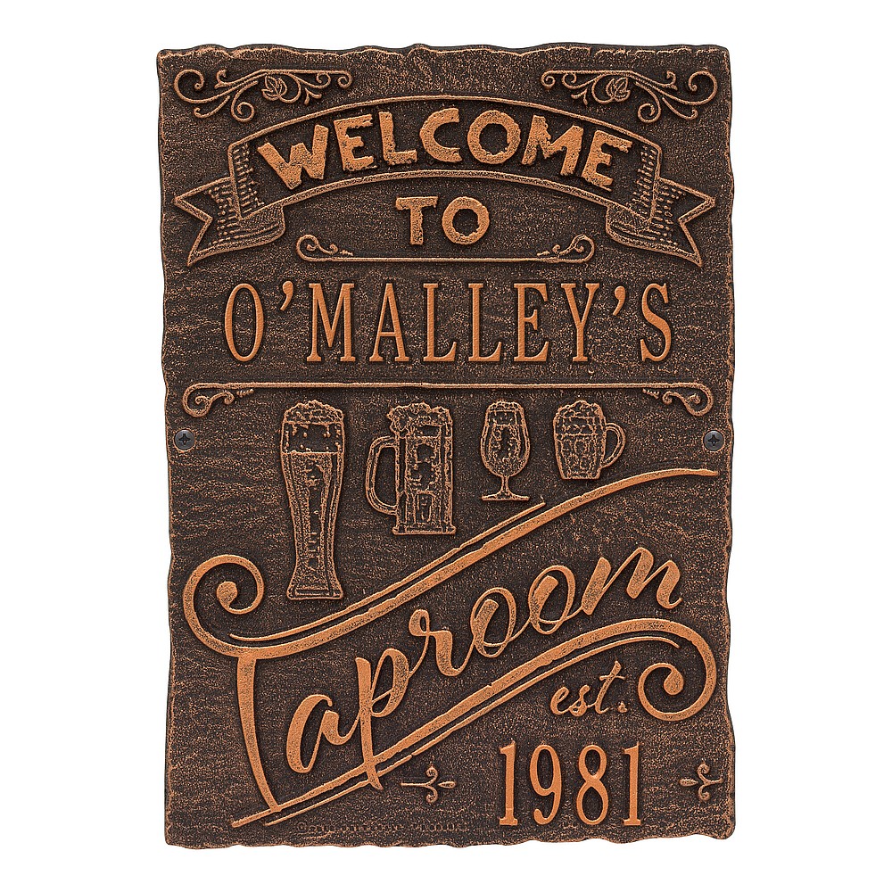 Dimensions (LxWxH): 9″ x 12.5″ x .35″ Cheers! The Tap Room Brew Pub Plaque is perfect for any home-brewer or craft beer aficionado. This handsome plaque creates a personalized touch in your private bar or man-cave. As the popularity of home brewing and home tap systems continues to rise, our tap room brew pub personalized bar sign is a great way to welcome your many guests. Handcrafted aluminum plaque for indoor or outdoor use. “Taproom” and “est” are part of the design. Alumi-Shieldâ„¢ – Protects against the harshest weather and environmental elements. Extends the product life and maintains the look and function. Made in the USA.