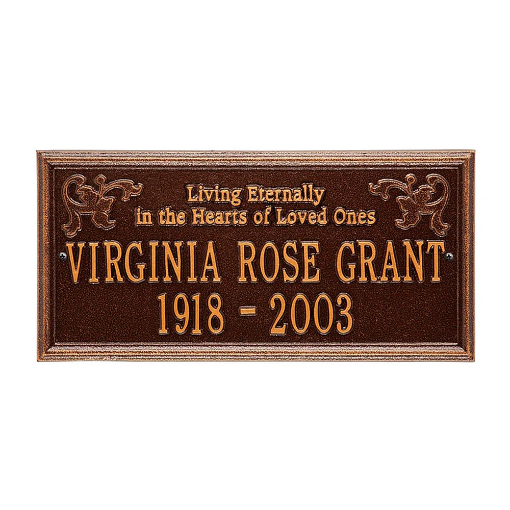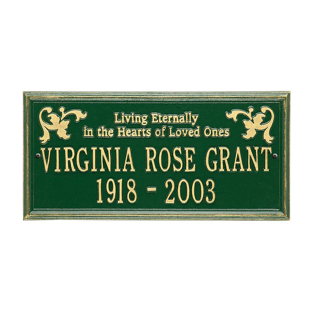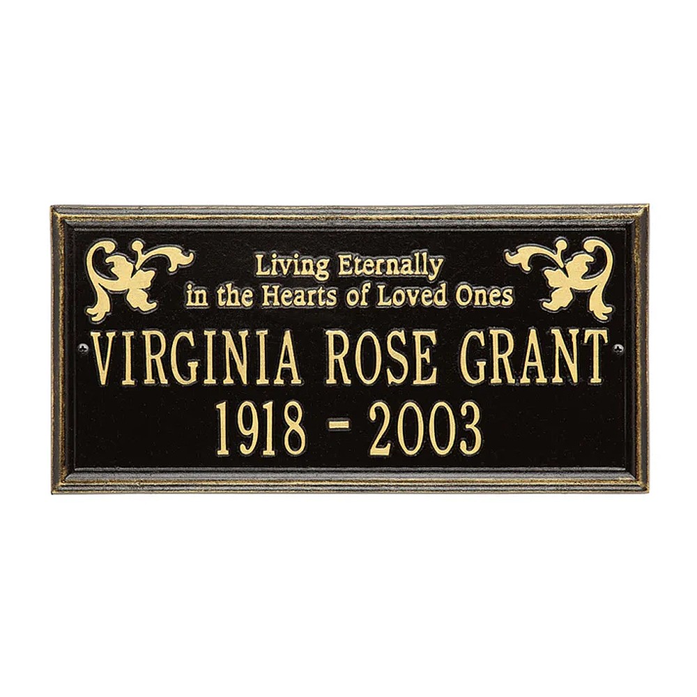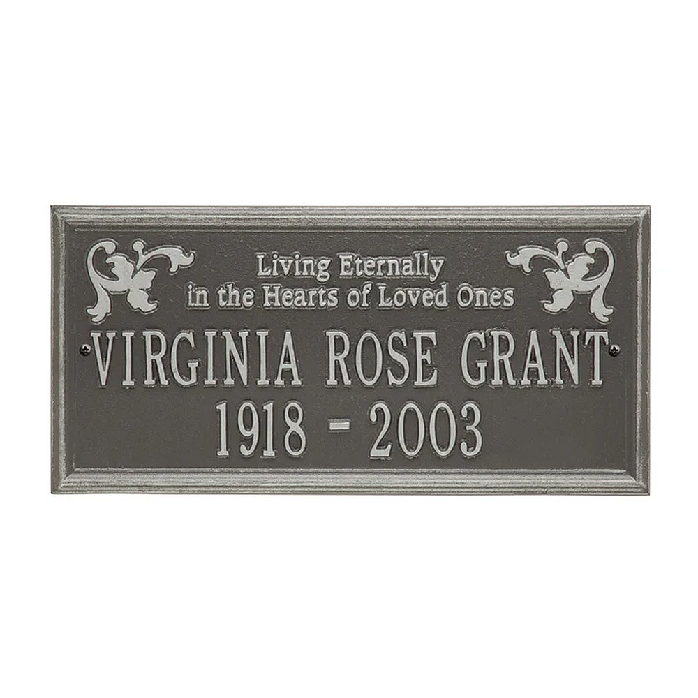 Dimensions (LxWxH): 17″ x 8.25″ x .375″ Honor, Remember, Cherish In moments of loss, finding a meaningful and lasting way to pay tribute to a loved one is essential. Whitehall Products presents the Wilmington living eternally Plaque – a distinguished and enduring memorial to celebrate the life and legacy of your cherished one. Elegance in Design: Crafted with precision and care, our Wilmington plaque boasts a classic and timeless design. The refined details and exquisite craftsmanship make it a fitting tribute to commemorate the memories you hold dear. Durable Quality: Forged from high-quality materials, the Wilmington plaque is built to withstand the test of time. Its durability ensures that your memorial will endure, just like the love and memories it represents. Customizable Touch: Personalize your tribute with a choice of elegant finishes, ensuring that the plaque reflects the unique personality and spirit of your loved one. Add custom text, dates, and a thoughtful message to make it truly one-of-a-kind. Versatile Placement: Whether displayed in a garden, on a memorial wall, or near a cherished location, the Wilmington living eternally Plaque seamlessly integrates into any setting. Its versatility allows you to create a special space that brings comfort and reflection. Weather-Resistant: Designed to withstand the elements, this plaque is weather-resistant, ensuring that your memorial remains pristine and beautiful through all seasons.