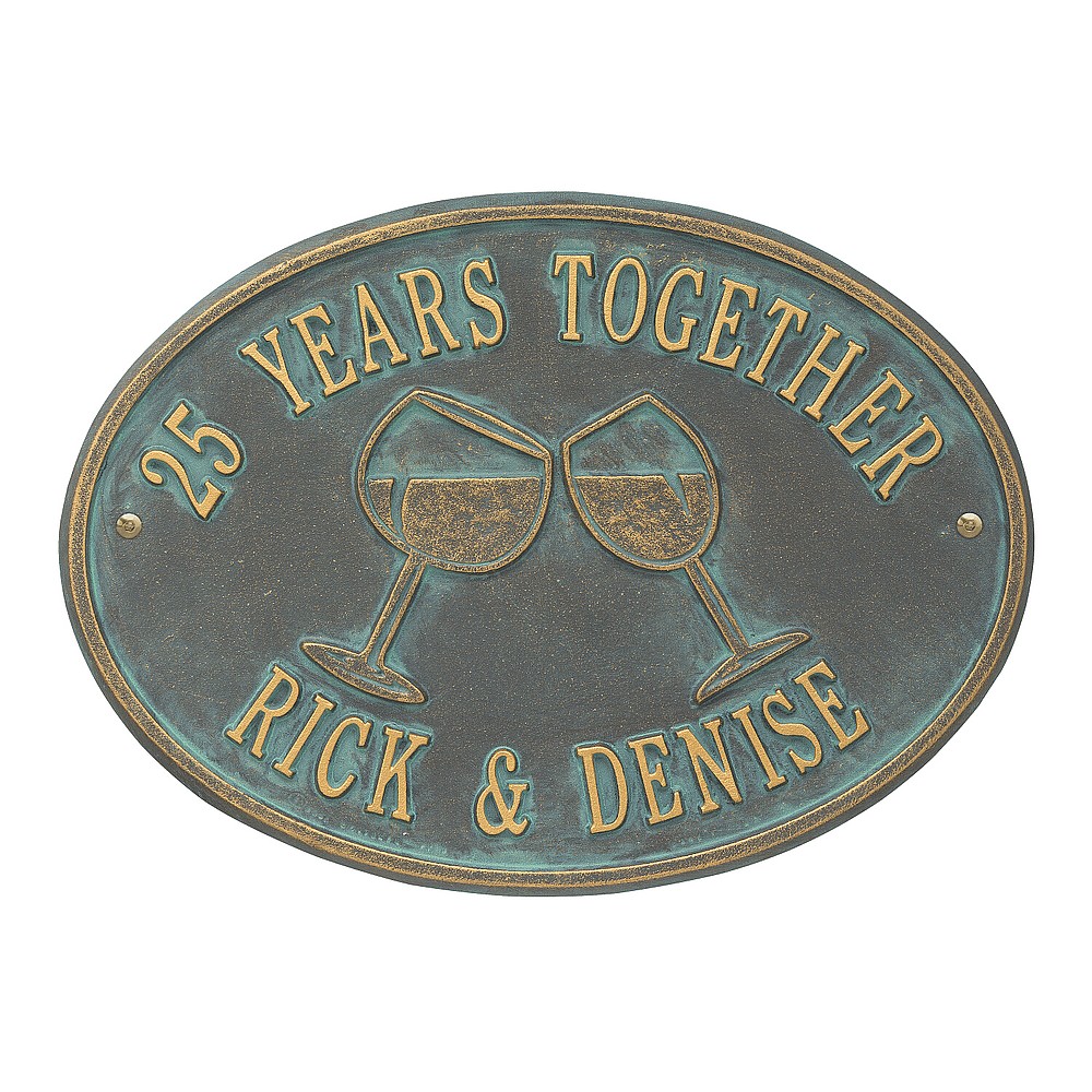 Dimensions (LxWxH): 14.25″ x 10.25″ x .25″ Dimensions (LxWxH): 14.25″ x 10.25″ x .25″ This personalized deck plaque give your guests a welcoming message and proclaim your easy going lifestyle in an upscale way. Two lines of customization offers endless possibilities! A Personalized plaque is a perfect gift to commemorate all of life’s celebrations. Makes a great personalized wedding, anniversary, or house warming gift. Handcrafted aluminum plaque for indoor or outdoor use. The two wine glasses are a permanent part of the design. Alumi-Shieldâ„¢ – Protects against the harshest weather and environmental elements. Extends the product life and maintains the look and function. Made in the USA. A Personalized plaque is a perfect gift to commemorate all of life’s celebrations. Makes a great personalized wedding, anniversary, or house warming gift. Handcrafted aluminum plaque for indoor or outdoor use. The two wine glasses are a permanent part of the design. Alumi-Shieldâ„¢ – Protects against the harshest weather and environmental elements. Extends the product life and maintains the look and function. Made in the USA.
