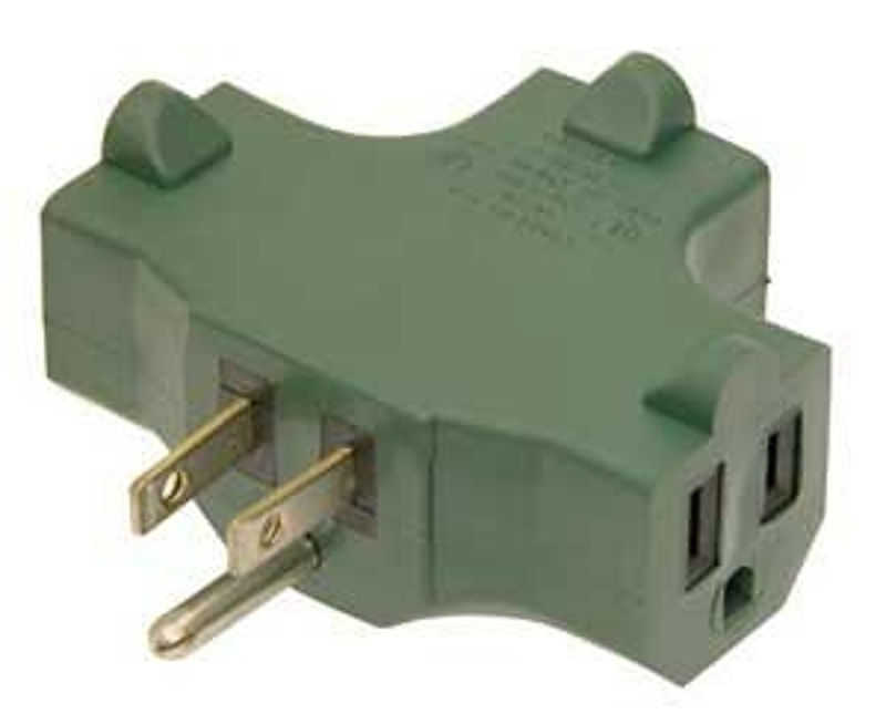 Woods Outlet Adapter, 3 Outlets, Green