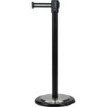 4-way connection permits all posts to receive up to three tapes from any direction, Slow retracting tape cassette insures tape will retract safely, Specially designed locking mechanism prevents accidental release, Base comes with built in wheels for ease of placement
