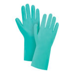 Cotton flock lined, Raised diamond pattern provides superior grip, Resistant to cuts, puncture and abrasion, 13″ length, 13-mil thick, Accepted for use in Canadian food processing facilities, Applications: Food processing, plant maintenance, chemical processing, automotive and printing