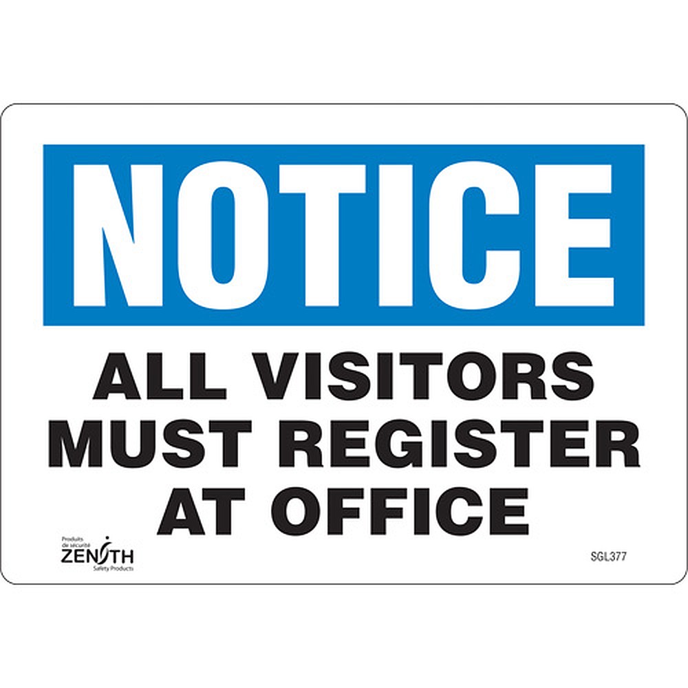 Zenith Safety Products SGL377 "All Visitors Must Register" Sign