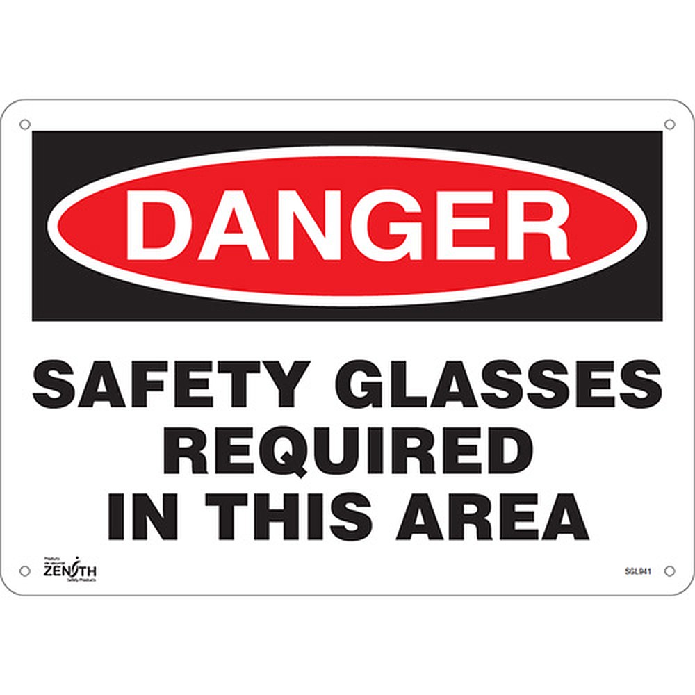 Zenith Safety Products SGL941 "Safety Glasses Required" Sign