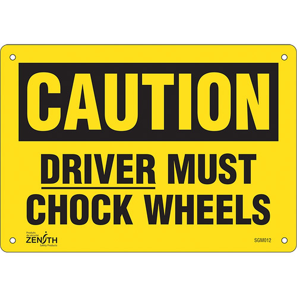 Zenith Safety Products SGM012 "Driver Must Chock Wheels" Sign