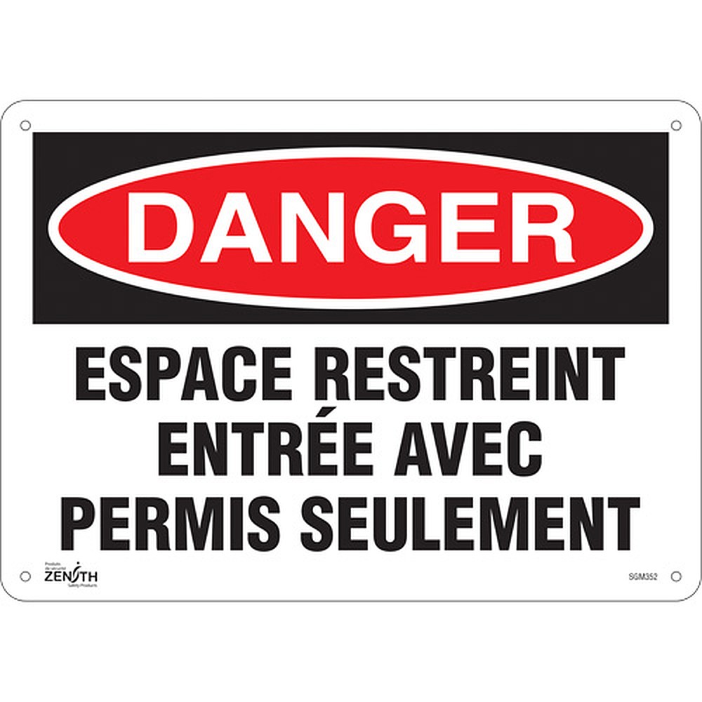 Zenith Safety Products SGM352 "Espace Restreint" Sign