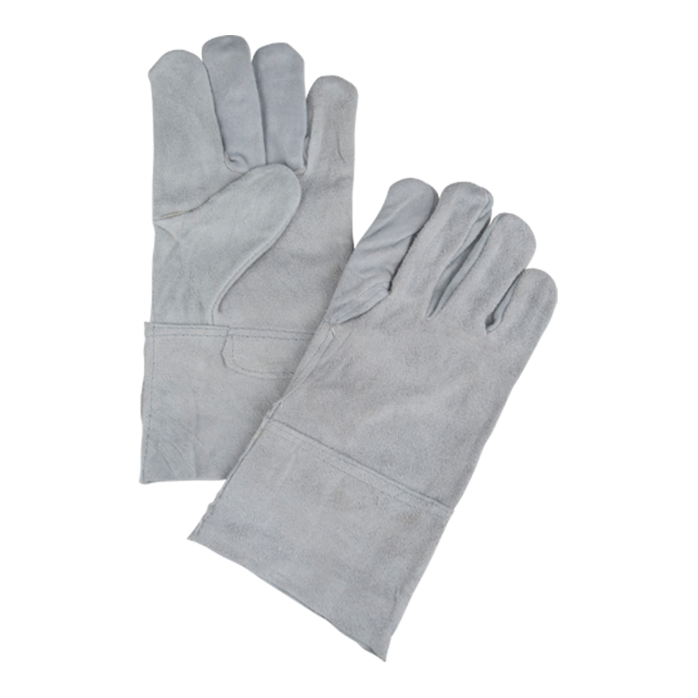 Standard quality split cowhide leather construction, Good abrasion resistance, Unlined palm, Full split 4″ leather cuff, Applications: Material handling, fabrication, metal handling and construction