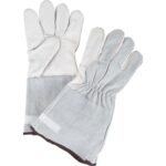 Standard quality goat grain palm and index leather, Split cowhide leather back and cuff construction, Hook and loop tab for adjustable fit, 5″ cuff provides superior protection, Exceptional dexterity, Palm and back cotton fleece liner provides added warmth