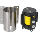 Ideal solution for restricting access in corridors, washrooms, and warehouses aisles, The magnetic end allows user to connect the tape to any metal surface, Wall mount barrier includes one wall receiver and hardware, Slow retracting tape cassette ensures tape will retract safely, End of tape includes 2 magnets