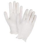 Protects products from fingerprints, hand oils and scratches, Can be worn as a liner with liquid proof gloves to absorb perspiration, Medium and heavyweight have hemmed cuff, Slip-on style, 48% cotton and 52% polyester blend, Applications: General inspection in industries where product protection is essential
