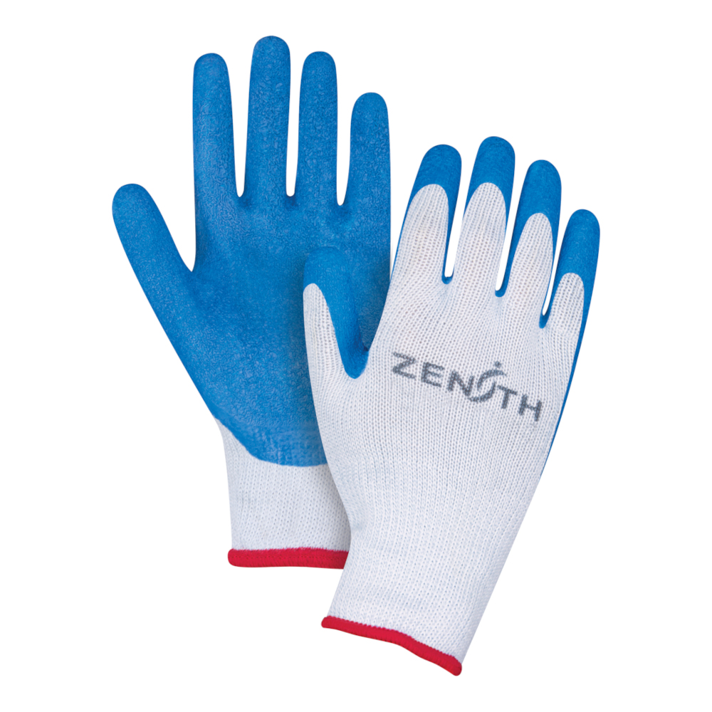 Zenith SAL256/12 Natural Rubber Seamless Knit Coated Gloves, Large – Blue & White